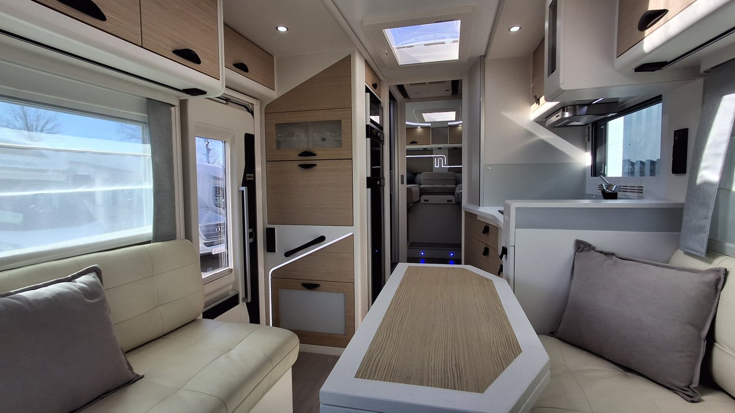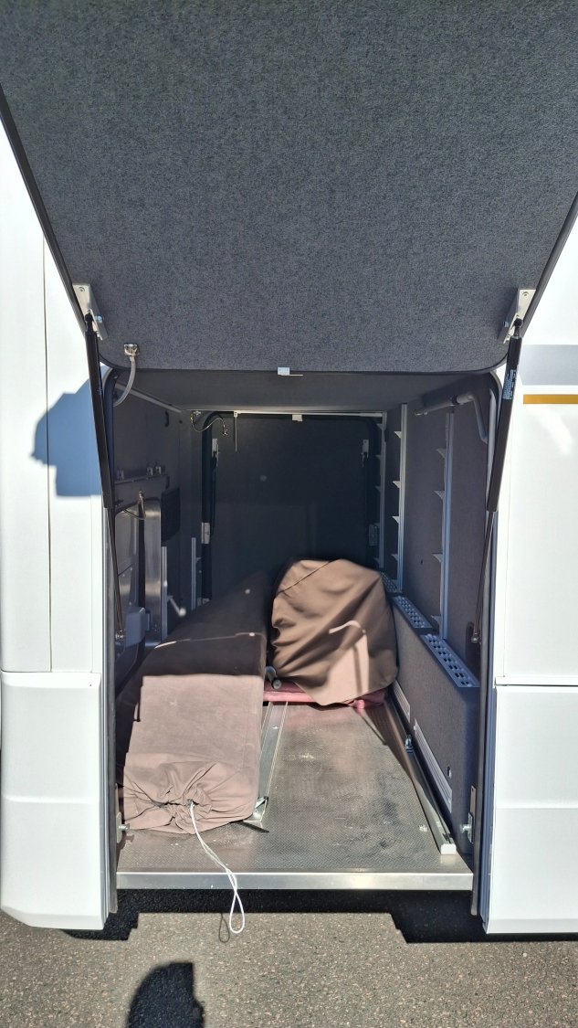 Radars avant et arriere, Douchette extérieure, Panneaux solaire, Jantes alu et enjoliveurs de luxe, Mini four, Cafetière nespresso, Lit cabine electrique, Cuir, Vitres et volets electriques notin, Marche pied conducteur electrique, Store extérieur leds, Antenne sat auto, Alarme, 2 rails dans soute, Store parebrise electrique, 1 TV chambre, 1 TV salon, Multimedia mercedes MBUX, Chauffage central alde, Lit king size, Truma duo c - invesseur gaz auto, Boite automatique, Vision drone 360, Convertisseur 2000 W, Batterie lithium 200 amp, Verins hydrauliques, Climatisation 220 V reversible