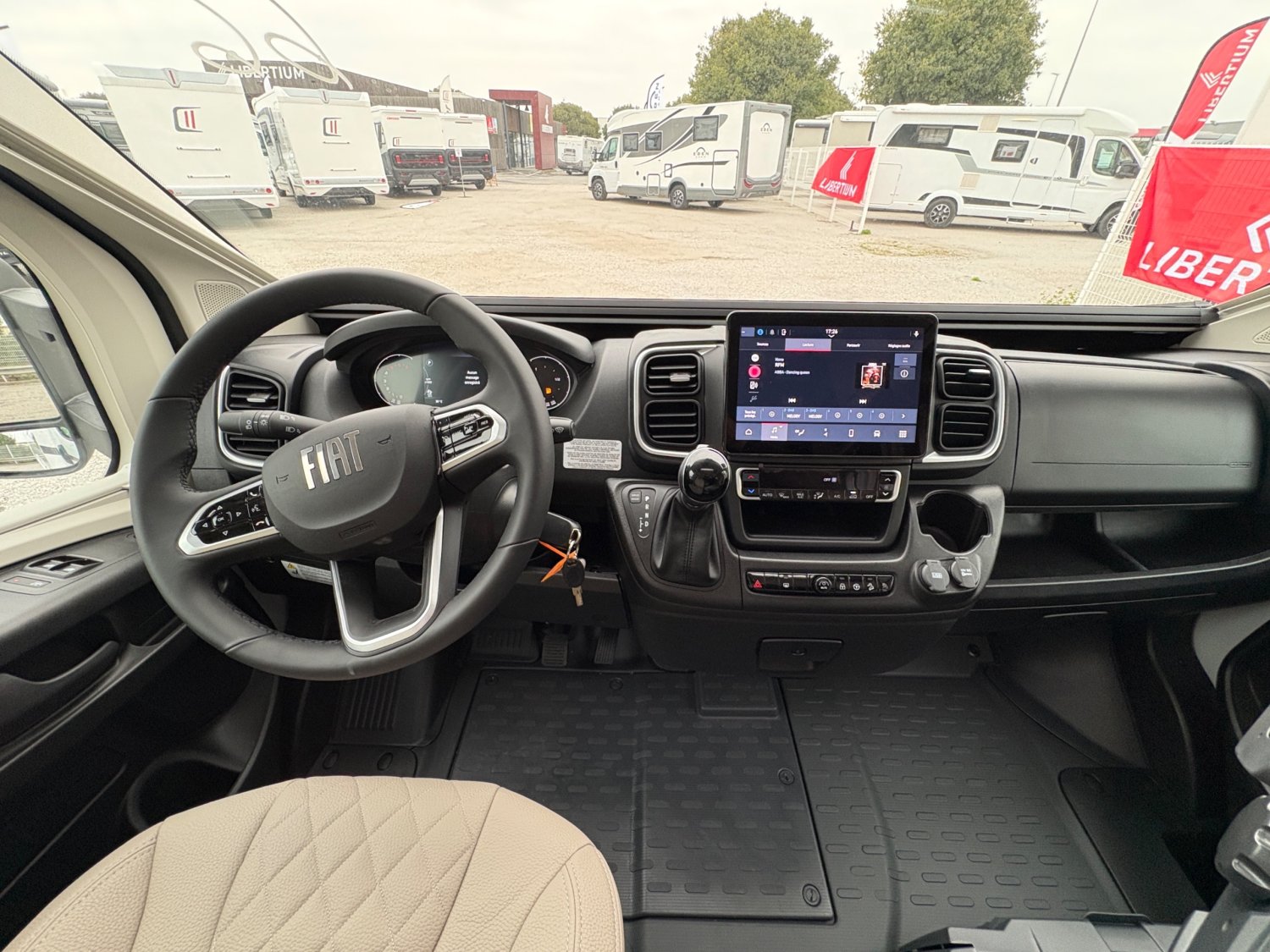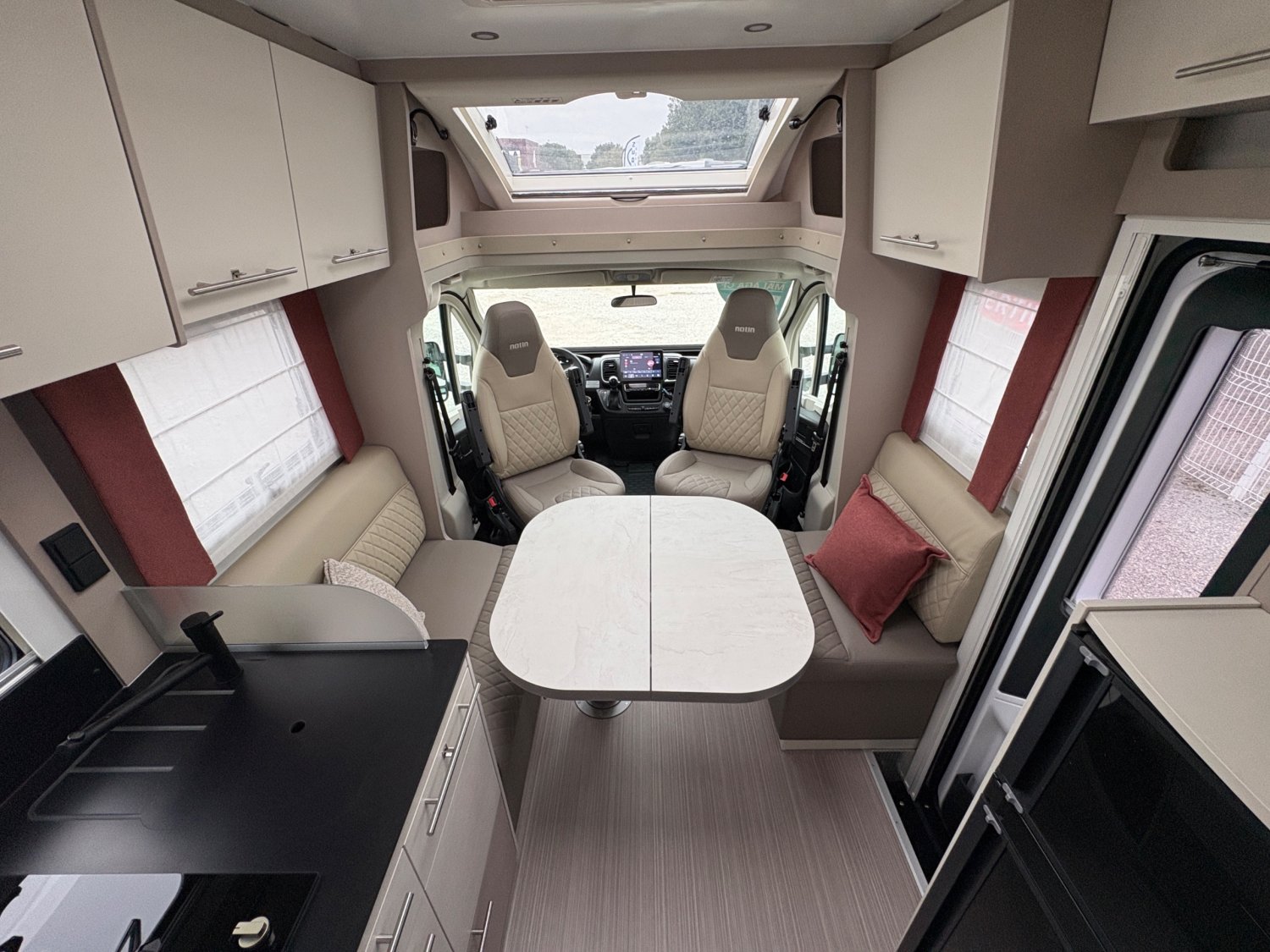 « Le Notin Malaga CF 2026, profilé élégant de 7,19 m construit sur porteur Fiat Ducato 2,2 L 140 ch, incarne le savoir-faire haut de gamme de la marque française avec sa cellule sans bois en structure composite garantissant une isolation optimale, son lit central spacieux surélevé au-dessus d’une soute modulable, sa salle d’eau transversale avec double cloisonnement, sa dînette conviviale baignée de lumière naturelle, son mobilier raffiné aux finitions laquées, ainsi que son équipement technologique complet — comprenant climatisation cabine, caméra de recul, panneau solaire, batterie lithium et écran multimédia tactile —, le tout dans une ambiance moderne et feutrée qui combine confort, autonomie et élégance pour offrir aux voyageurs exigeants une expérience de route et de vie à bord digne d’un véritable cocon mobile. »