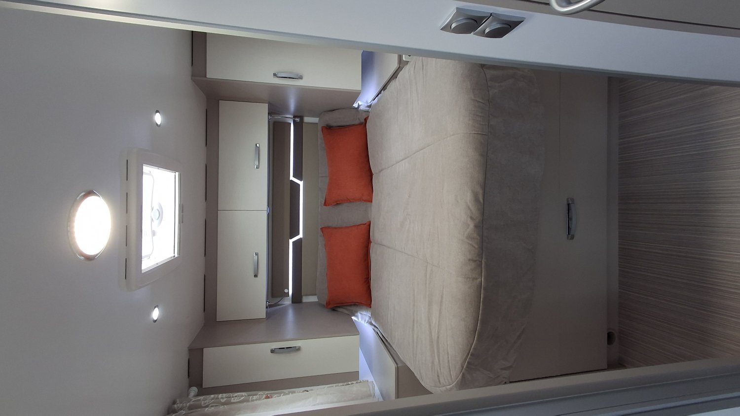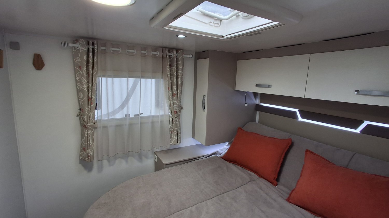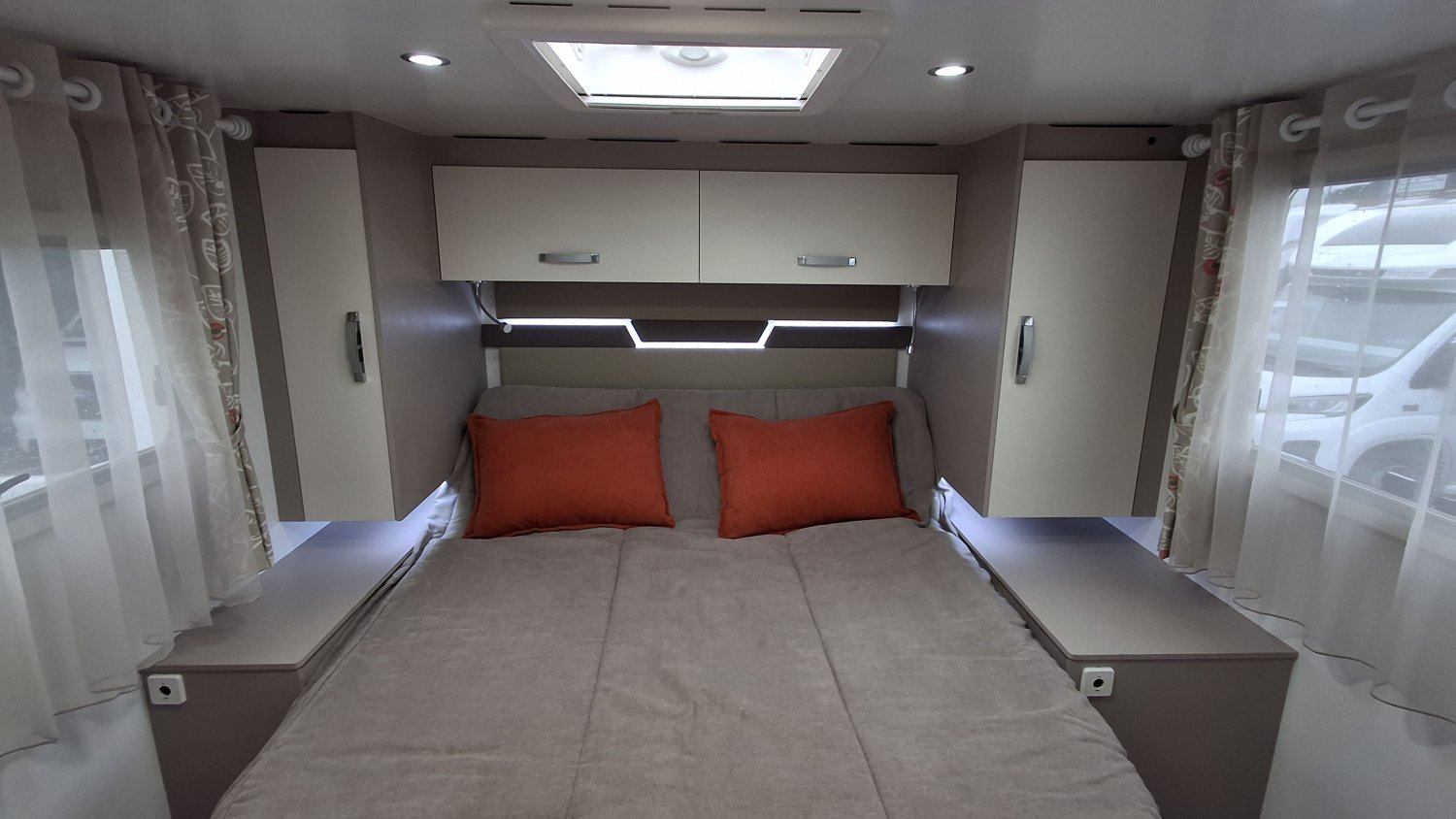 Rideau électrique parebrise, Antenne sat auto, Jantes alu, Store, BVA, TV, Autoradio camera de recul, Douchette exterieure, Convertisseur 2000W, Batterie lithium 100 amp, Climatisation cellule 220 V, Chauffage truma 6 EH