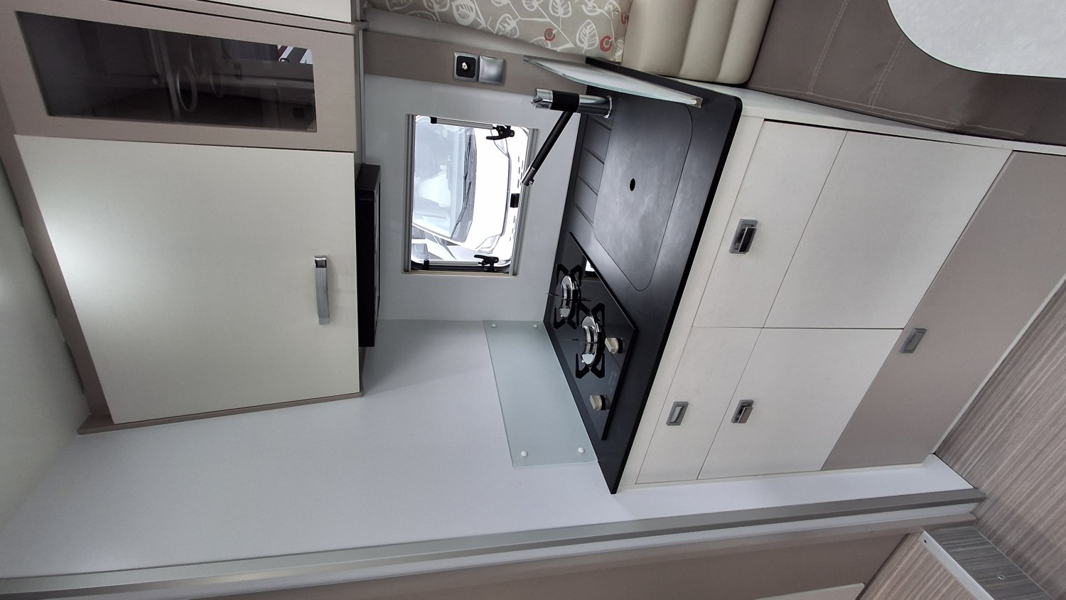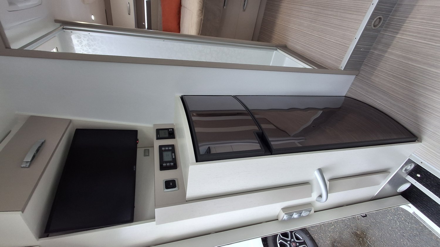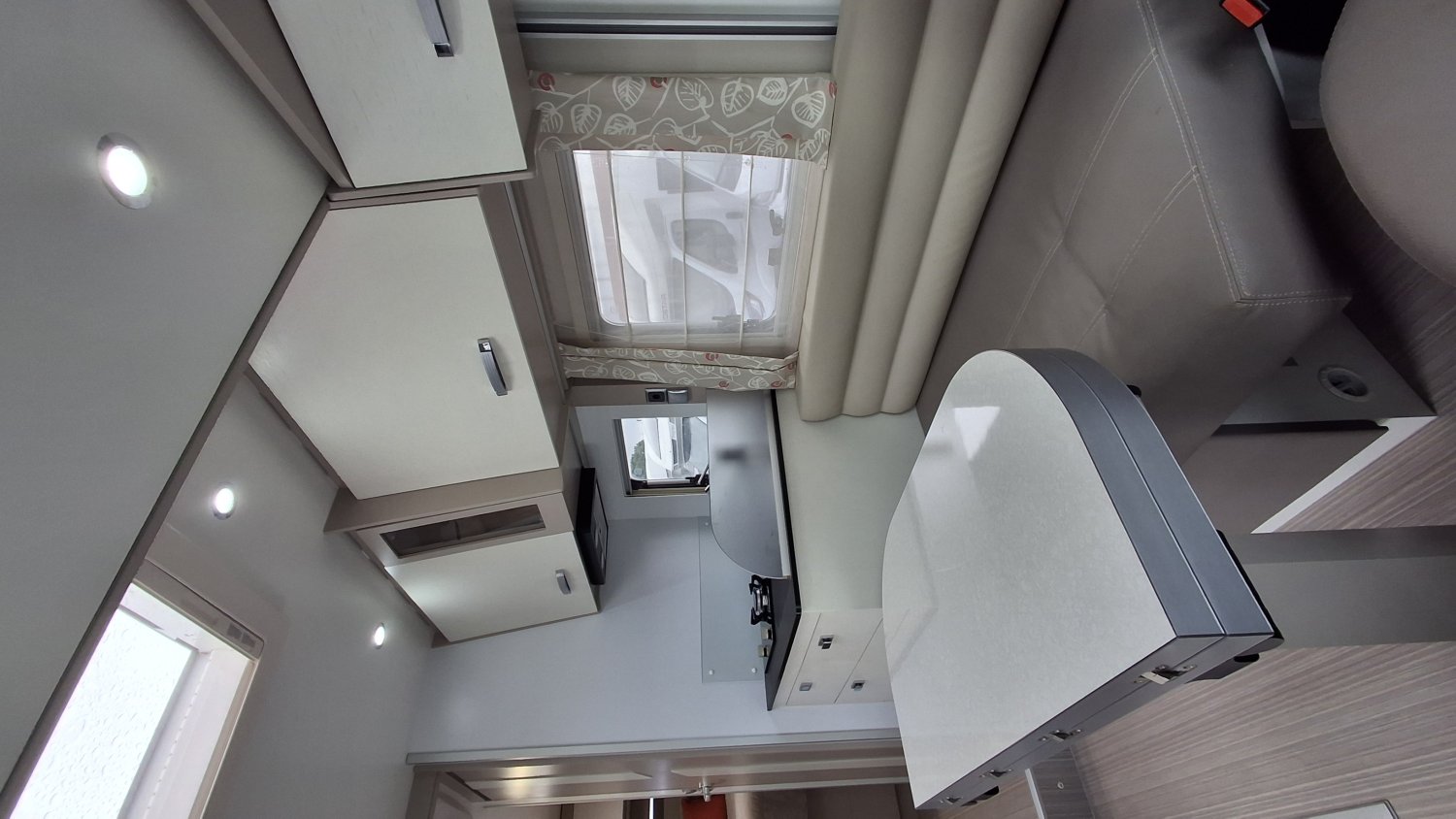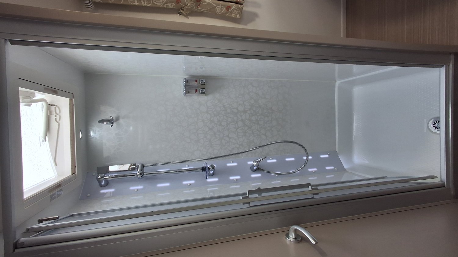 Rideau électrique parebrise, Antenne sat auto, Jantes alu, Store, BVA, TV, Autoradio camera de recul, Douchette exterieure, Convertisseur 2000W, Batterie lithium 100 amp, Climatisation cellule 220 V, Chauffage truma 6 EH