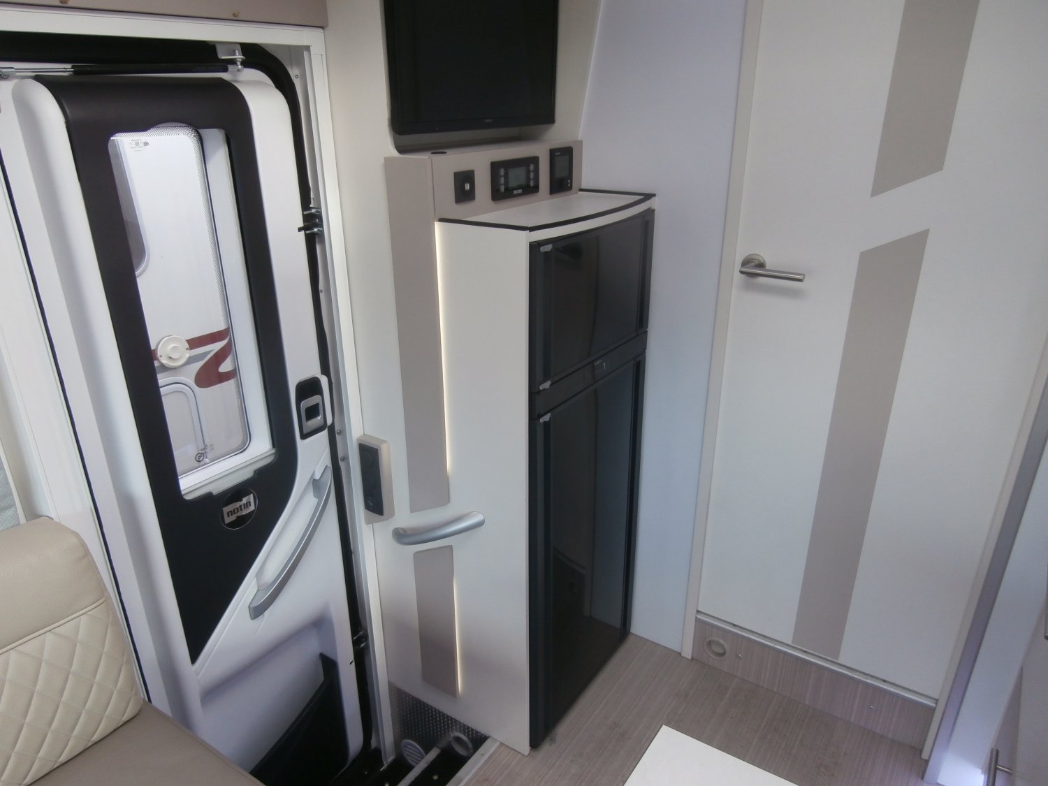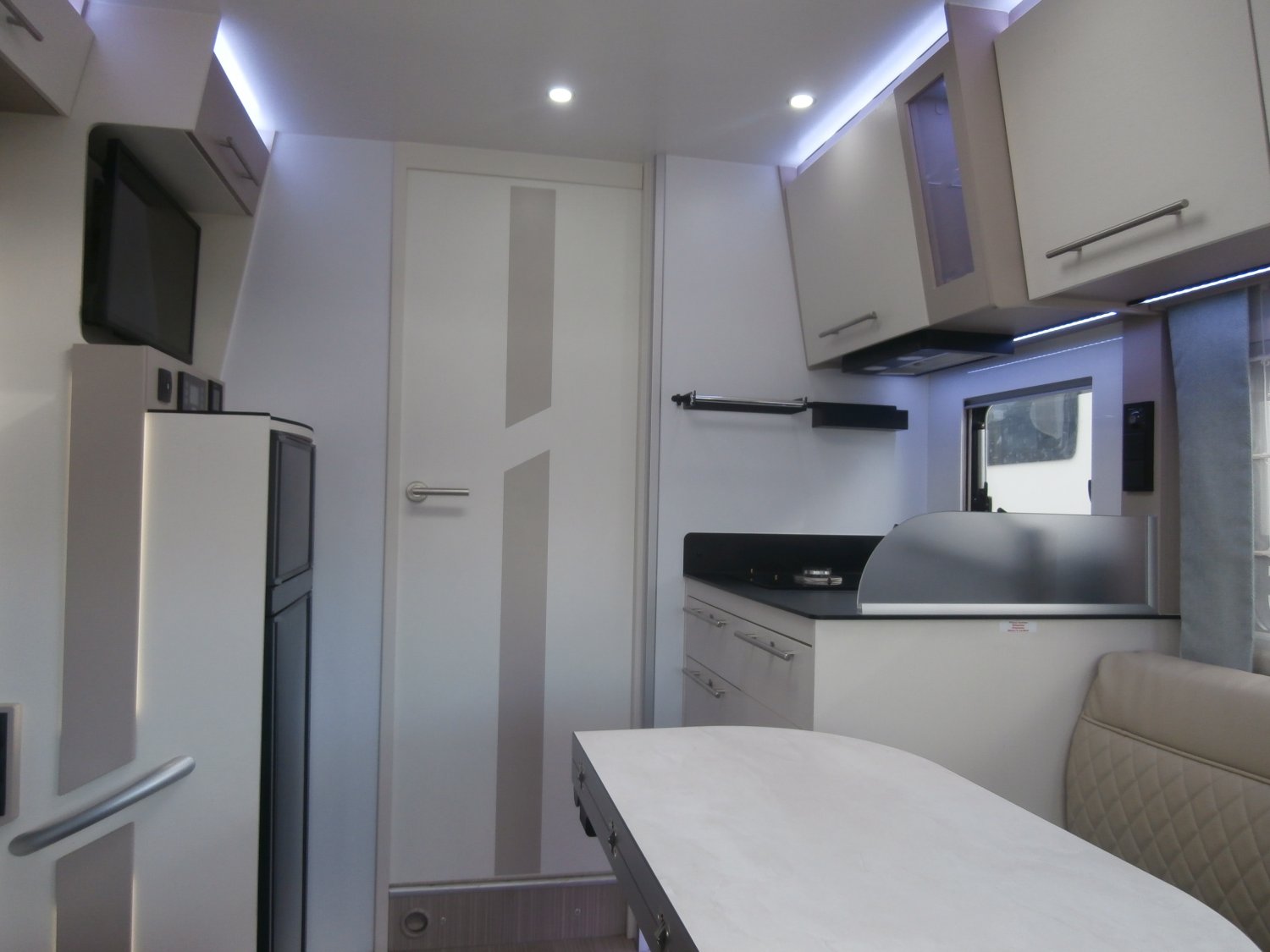 BOITE AUTO, CAMERA 360 ° PROGRESS 7 POUCES, OCCULTANTS CABINE, ROUTEUR WIFI, TV ARRIERE, TV AU SALON, Porte séparatrice chambre, CONVERTISSEUR 2500 W DOMETIC + CDE DEPORTEE, SAFE DOOR X3, STORE, PORTE VELO