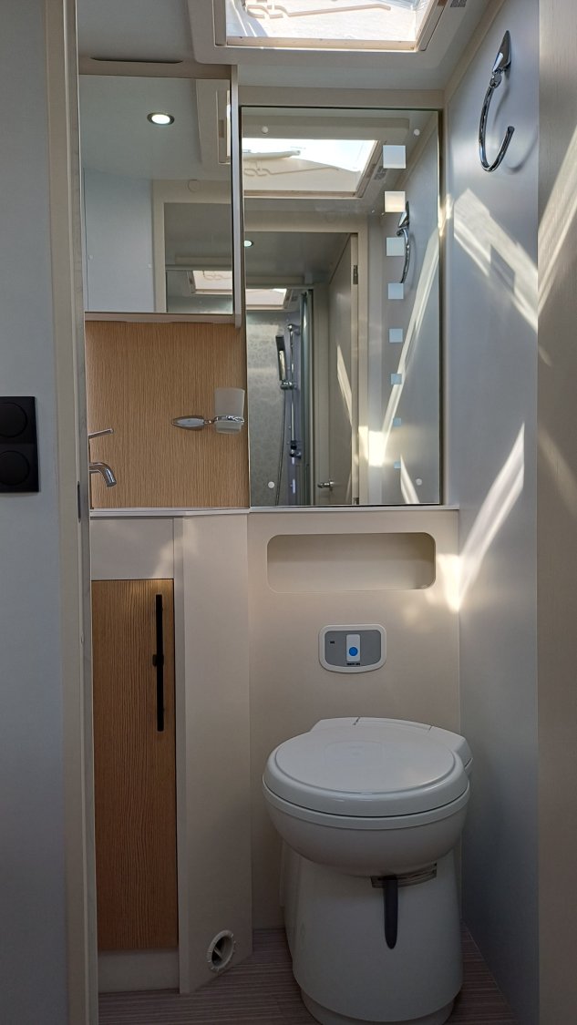 Boite automatique, Renforts des suspensions pneumatique, Antenne satellite auto + TV, Panneau solaire 150 W, Batterie lithium + convertisseur, Porte de séparation chambre, 2 rangements dans le double plancher, Store