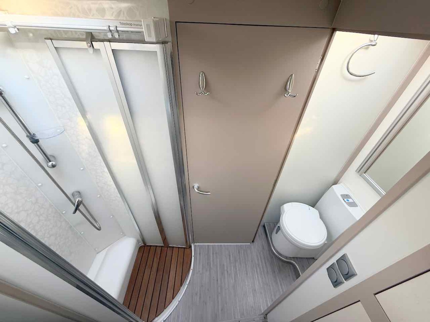 Un vrai espace salle de bain, rare sur ce gabarit