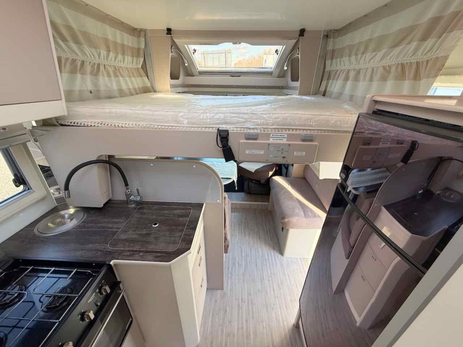 Lit sur soute permanent à l’arrière (190 × 135 cm) : spacieux, confortable et très accessible