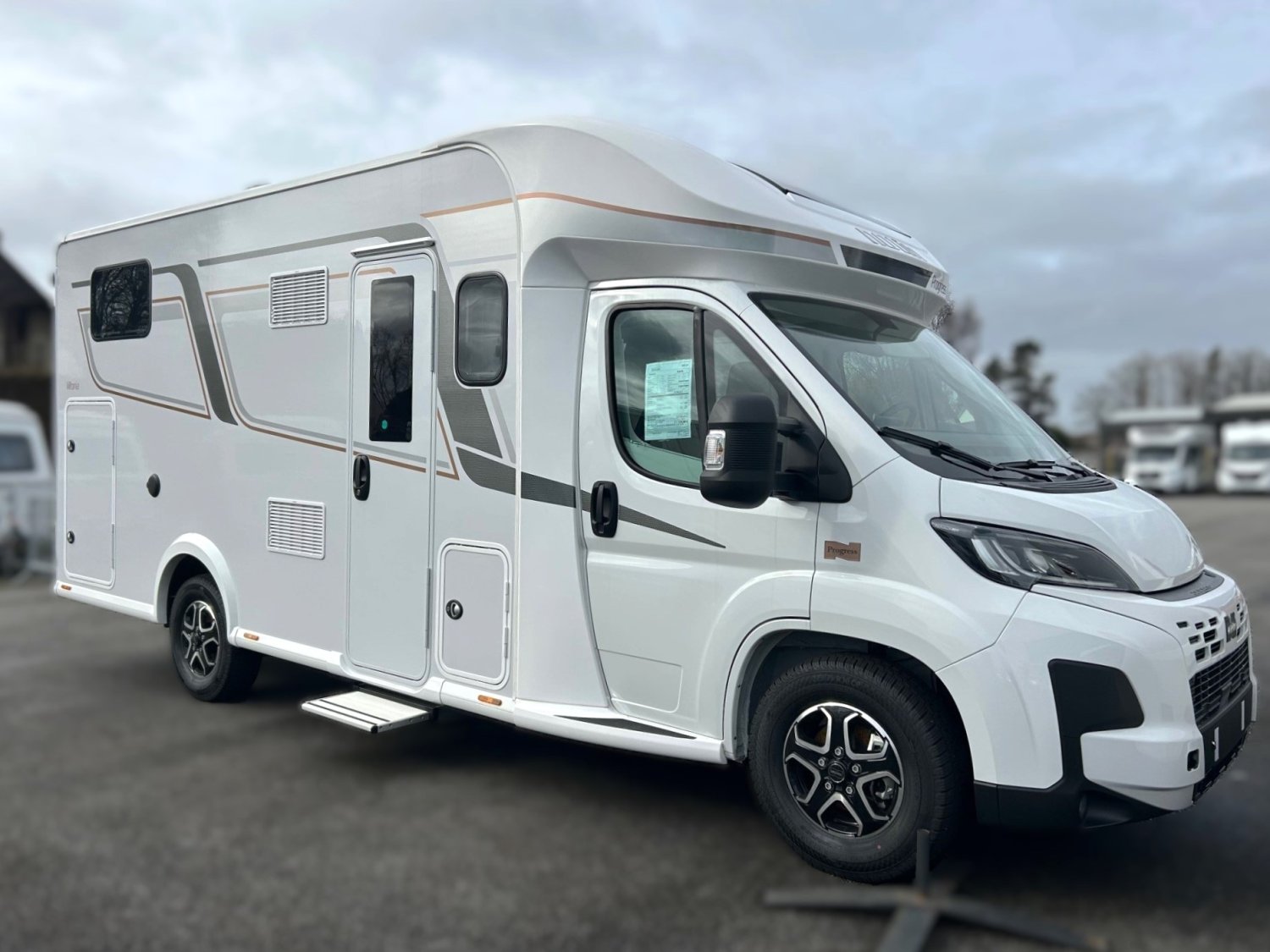 Ce modèle repose sur un Fiat Ducato 2.2 L de 140 ch, reconnu pour sa fiabilité et son agrément de conduite. Il est équipé d’une boîte automatique, idéale pour les longs trajets comme pour les manœuvres urbaines.
