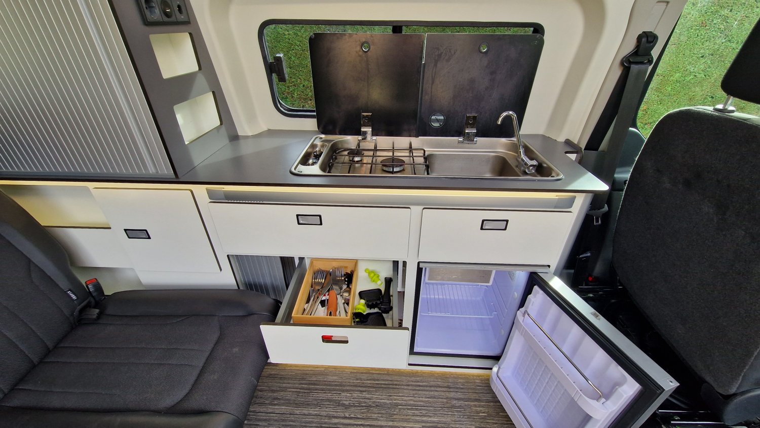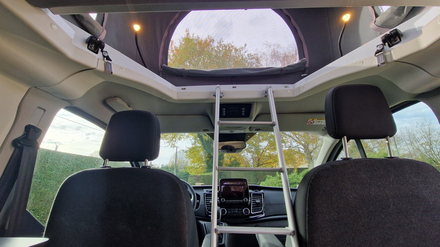 Vivez confortablement l’aventure au quotidien : un toit relevable avec lit mezzanine et vue panoramique + un lit banquette amovible. Un coin cuisine fonctionnel avec de nombreux rangements + une table amovible permettant d’offrir pour les repas un bel espace salon convivial grâce à ces deux sièges cabine pivotants. Une douchette extérieure + douche solaire et un WC nomade complètent la dotation.
