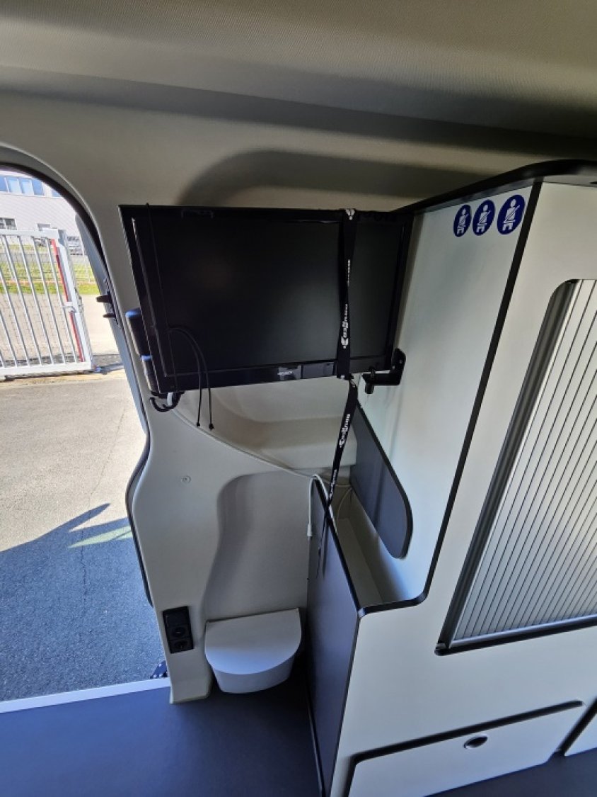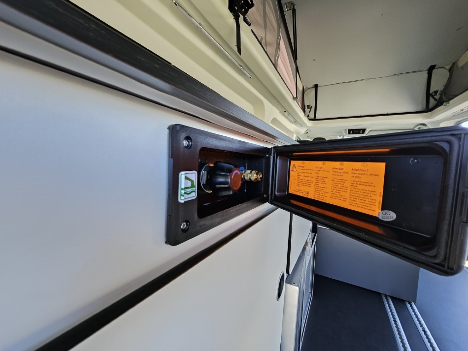 Table amovible se rangeant dans la porte latérale - Douchette extérieure avec chauffe eau - WC chimique portable - Nombreux rangements avec des revêtements plastifies - Réservoir d’eau propre de 65 L intégré dans l’habitacle - Réservoir d’eaux usées chauffé de 35 L - Chauffage sur carburant Webasto de 2.000 W