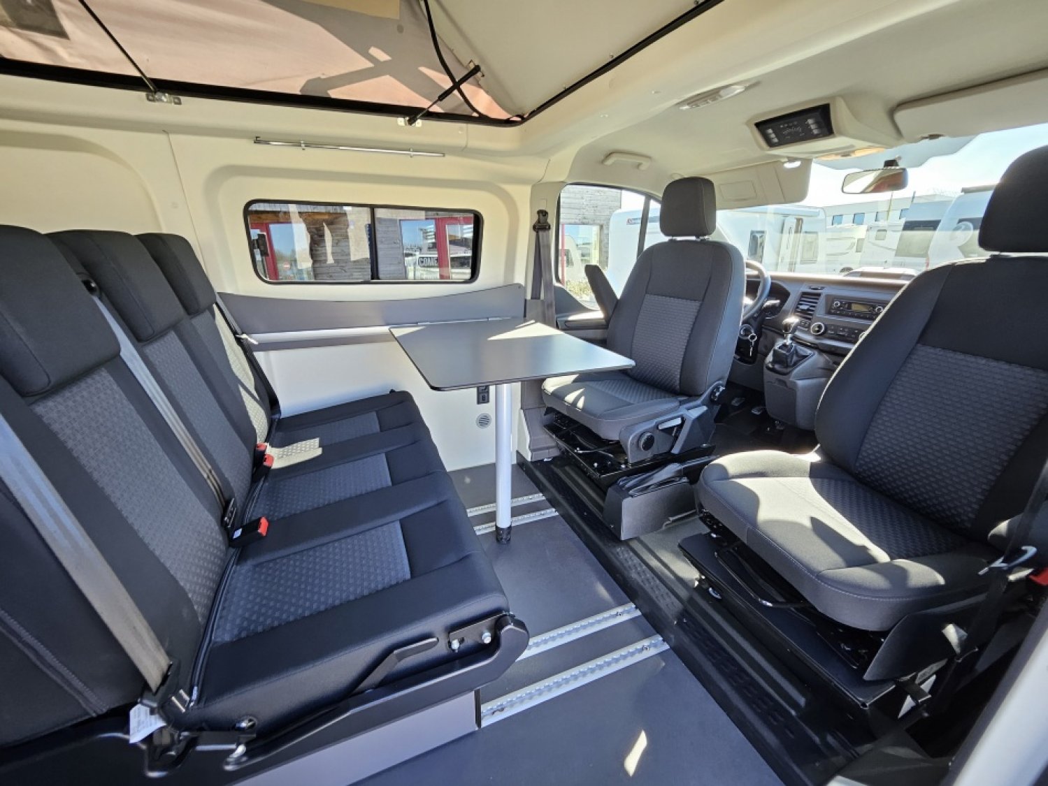 Sièges de cabine pivotants avec accoudoirs rabattables pour réaliser un espace repas intérieur pour 4 personnes