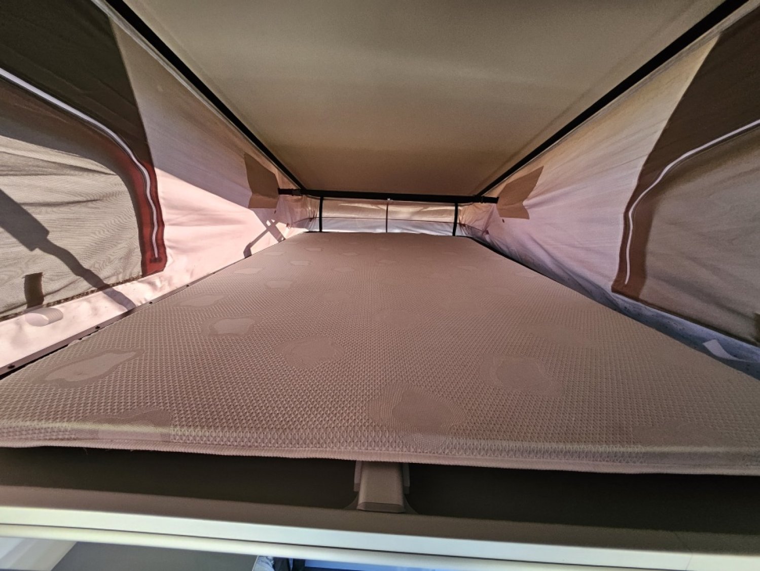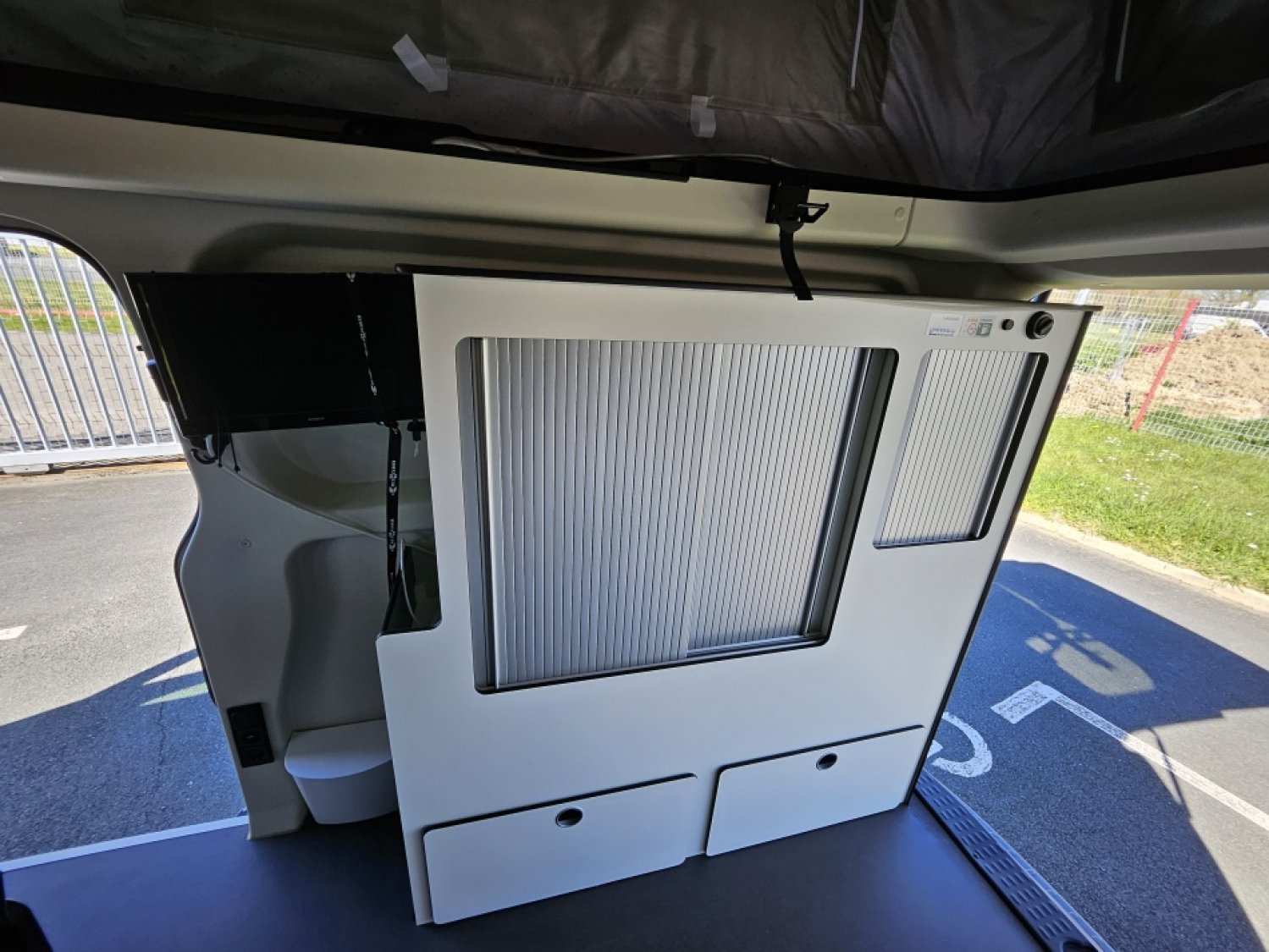 Toit relevable en position arrière pour un maximum de place sur l espace vie / cuisine - couchage sur sommier avec matelas