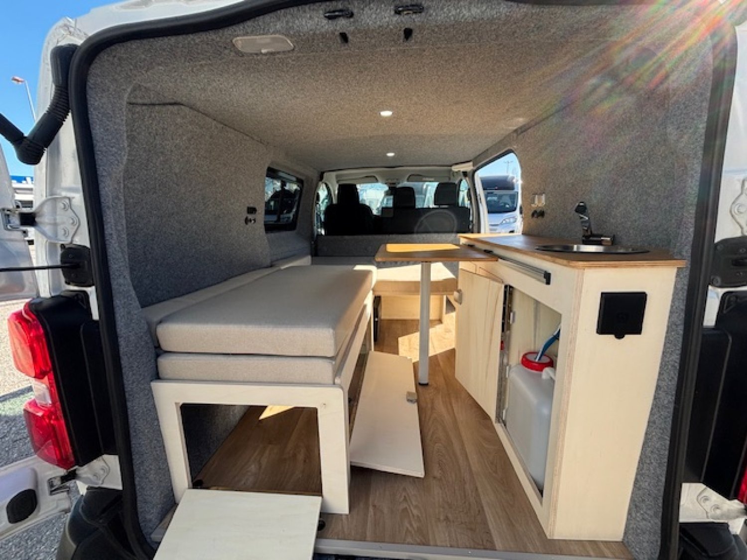 Découvrez chez NARBONNE CAMPING CARS, ce van aménagé court passe partout moins de 5m sur Peugeot Expert, boîte manuelle 6 vitesses, 2 places de couchage et 3 cartes grises.