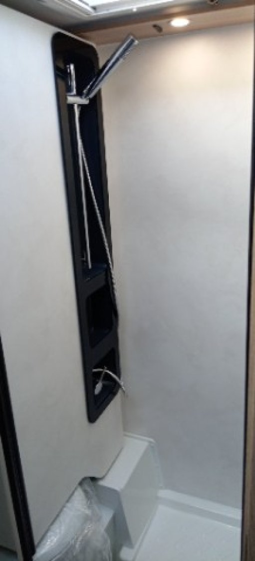 CAILLEBOTIS DANS LA DOUCHE, DOUCHE EXTERIEURE, ECLAIRAGE SOUTE, INVERSEUR GAZ CHAUFF ROULANT, PORTE SERVIETTE, PRISE 230V EN SOUTE, RAIL ARRIMAGE SOUTE, RESERVOIR EAUX USEES ISOLE ET CHAUFFE, STORE BANNE, TRUMA COMBI 4