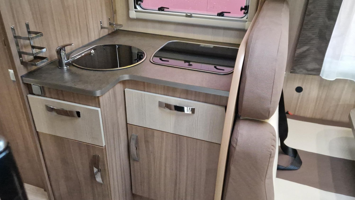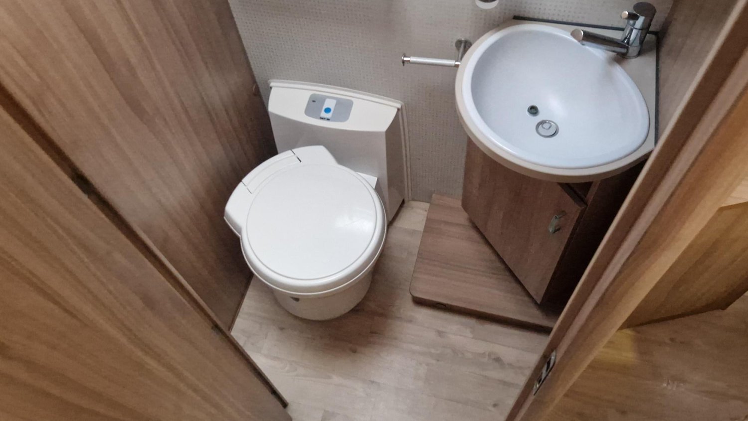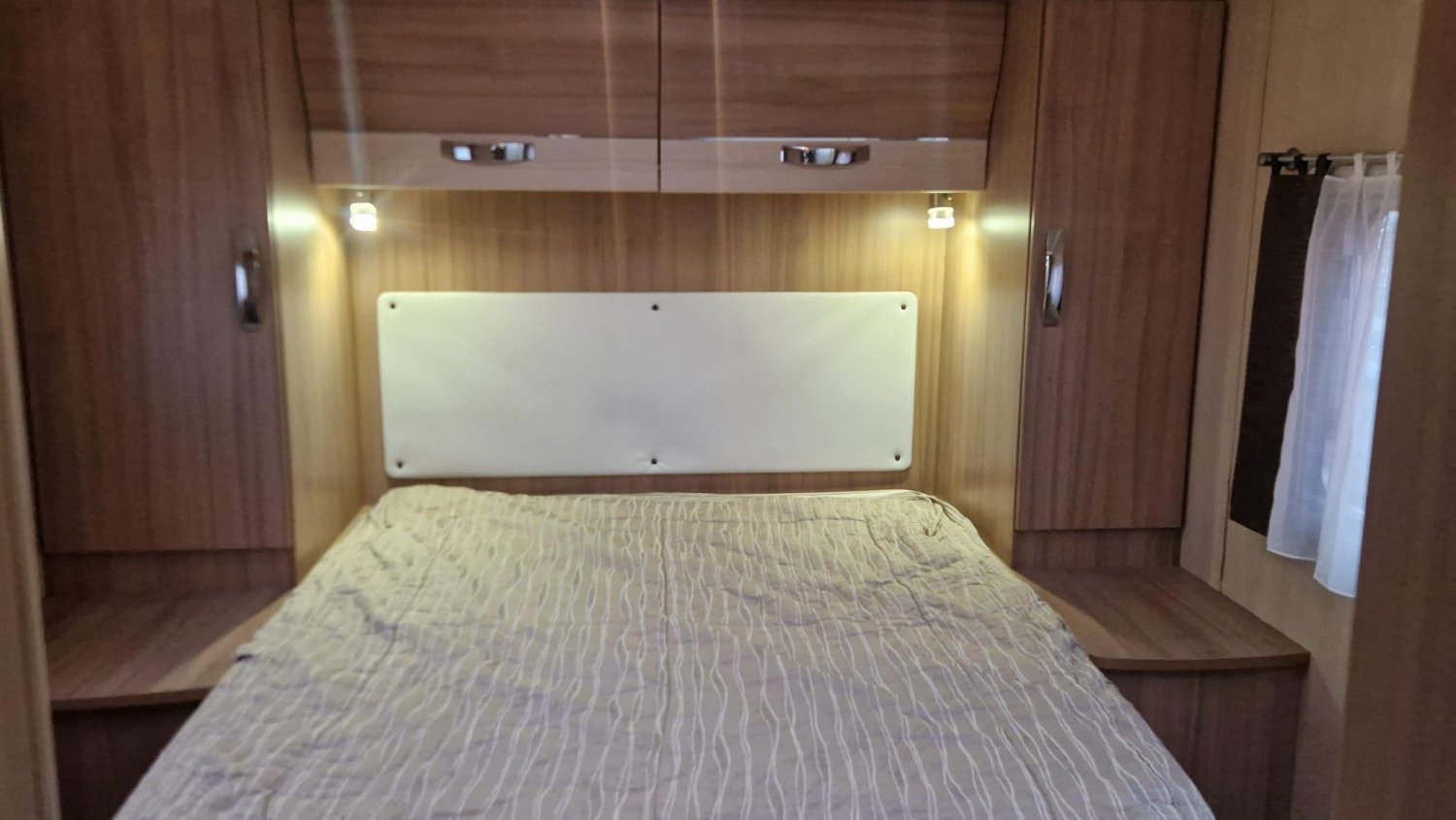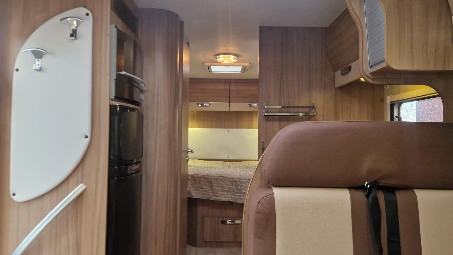 Intégral en lit central avec douche et wc séparés, idéal pour débuter en camping car ou rechercher un peu plus de confort à bord.