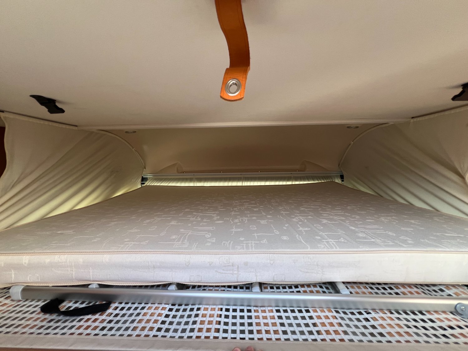 Couchage : Lit permanent arrière (140 x 190 cm), Lit de pavillon (135 x 190 cm)