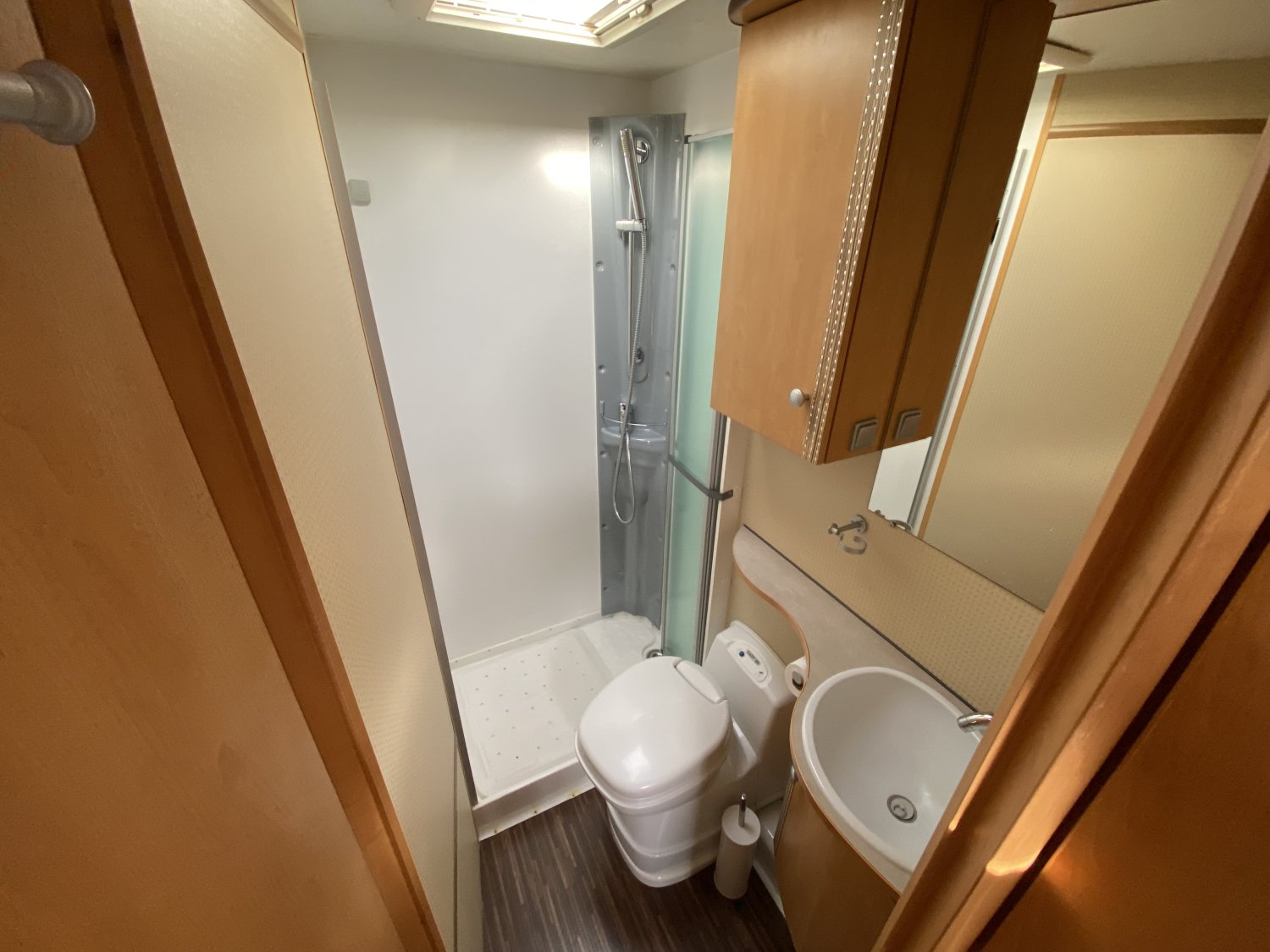 STORE EXTERIEUR, PANNEAU SOLAIRE, ANTENNE, PORTE VELOS, REFREGIRATEUR 149 LITRES, LIT DINETTE (210x120 cm), LIT PERMANENT ARRIERE (200x138 cm), CHAUFFAGE GAZ, FOUR A GAZ, DOUCHE SEPAREE