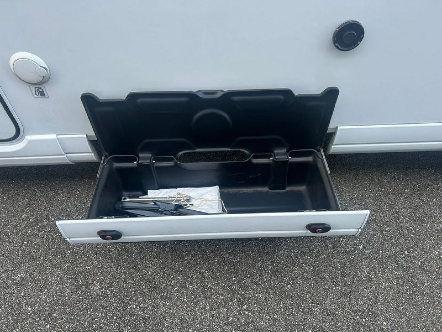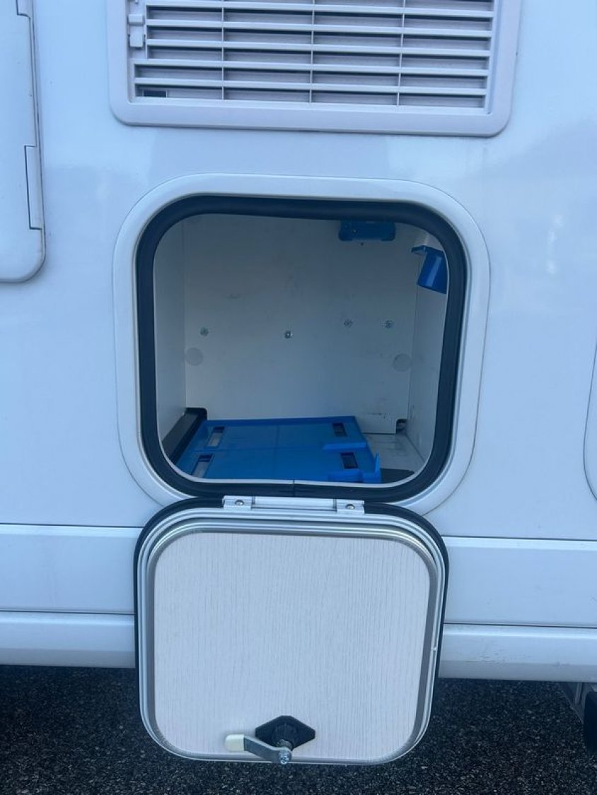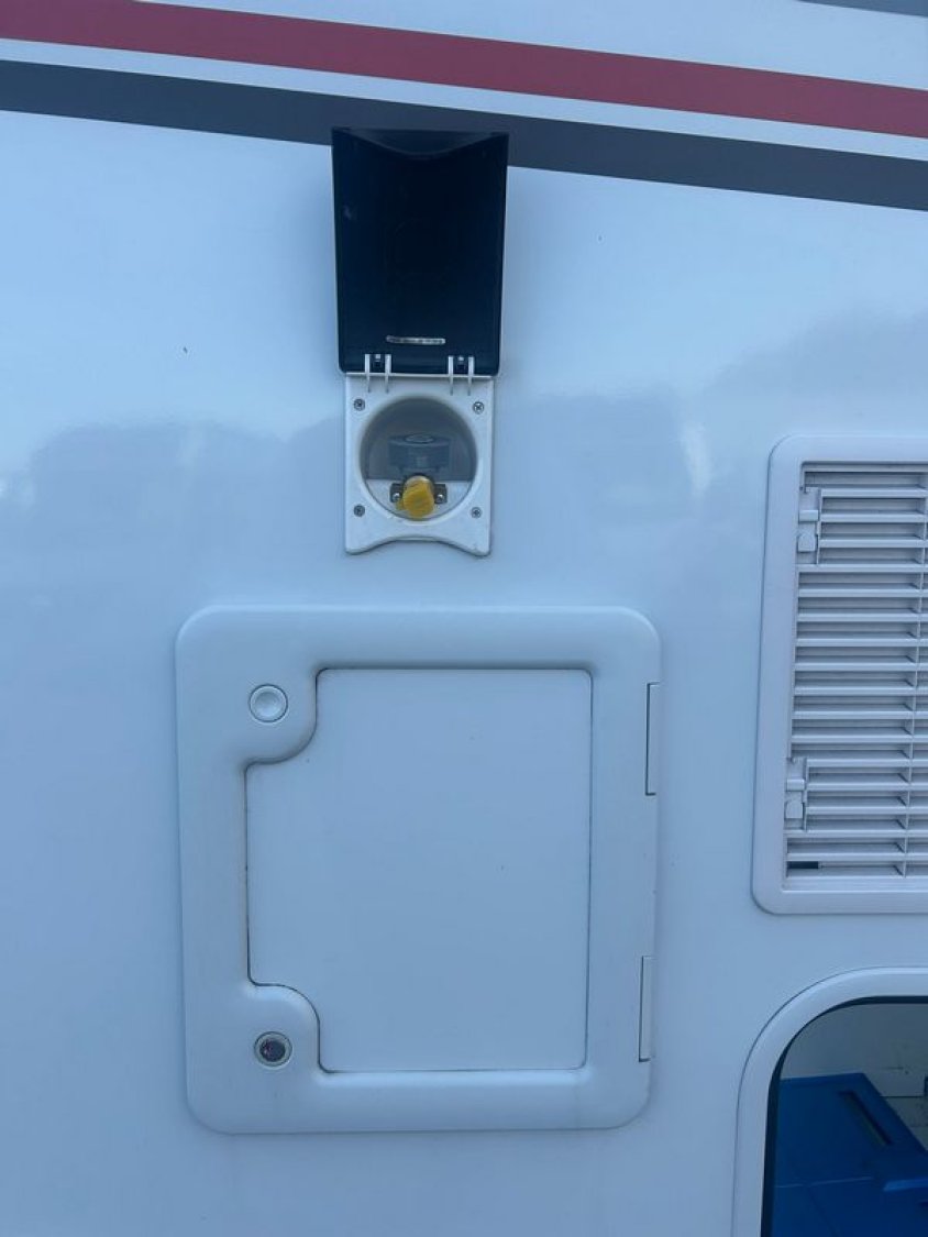 rails et prise 230 V en soute, douchette eau froide/chaude dans la soute,