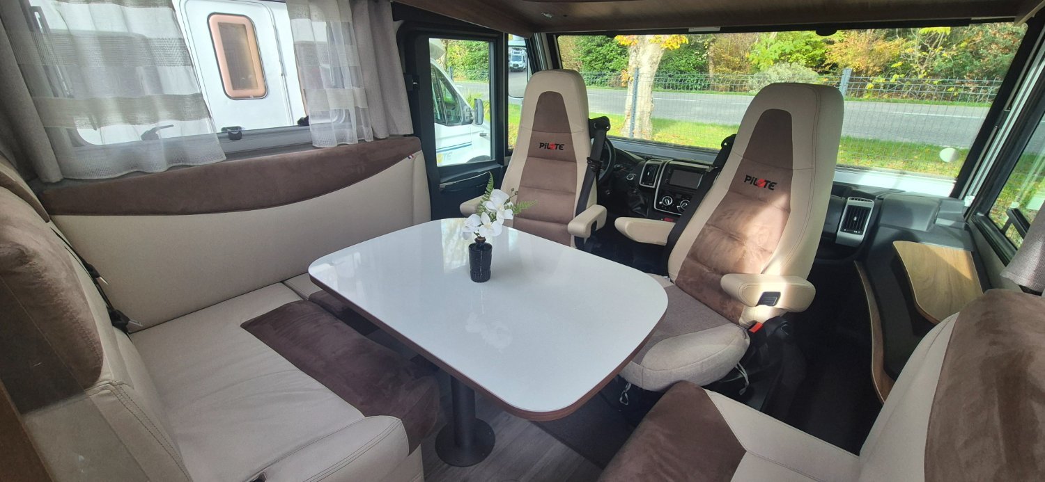 PILOTE Intégral 4 couchages, Diesel - 2019 - 95 080 km - 130 CV, 59 900 €. Porteur : Fiat Ducato 2,3 l 130 ch L x l x h : 7.49 x 2.30 x 2.85 m PTAC/CU (kg) : 3500/545 PTRA 6000 kg Clim cabine : Oui Carrosserie : Polyester Cuisine : avec réchaud 3 feux - réfrigérateur 160 litres Couchage : Lit permanent arrière (190 x 140 cm), Lit de pavillon (190 x 135 cm) Toilette : WC à cassette Douche : Indépendante store exterieure 2 panneaux solaire 2 batteries 100 AH Convertisseur 500W Antenne satellite automatique TV HD Marche pied électrique moustiquaire de porte camera de recul poste multimédia suspension pneumatiques four a gaz véhicule révisés mécanique et céllule garantie commerciale 12 mois