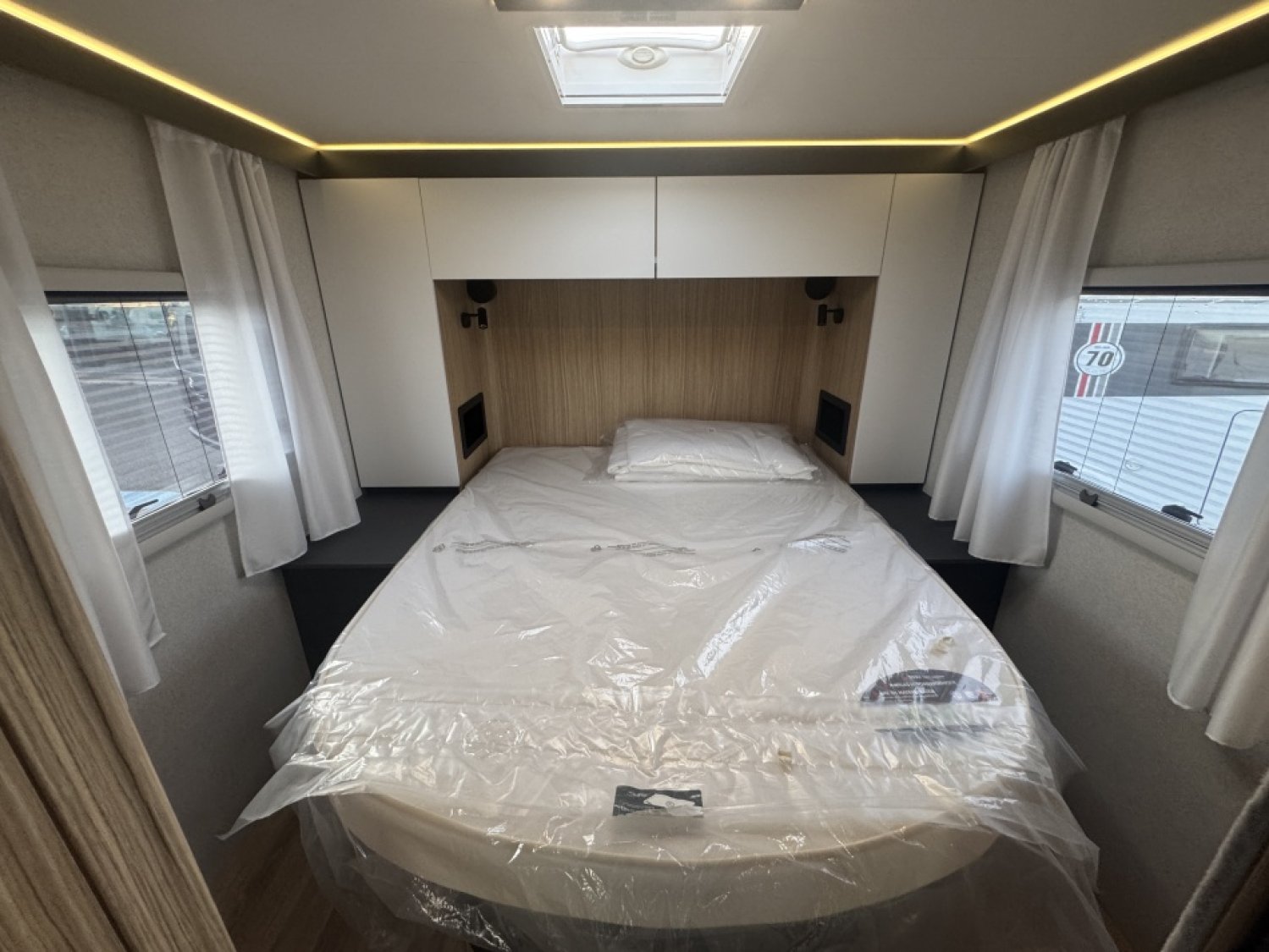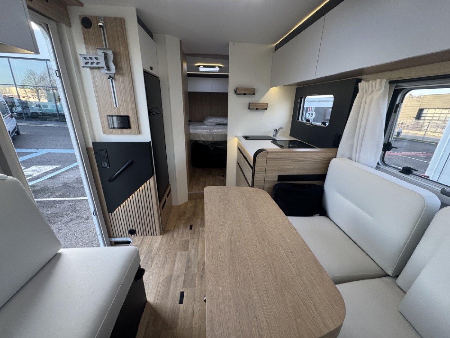 Avec ses 4 couchages, son lit central grand confort, son lit pavillon électrique et son salon face-à-face convivial, ce modèle intégral de 7,49 m combine espace, luminosité et praticité.
