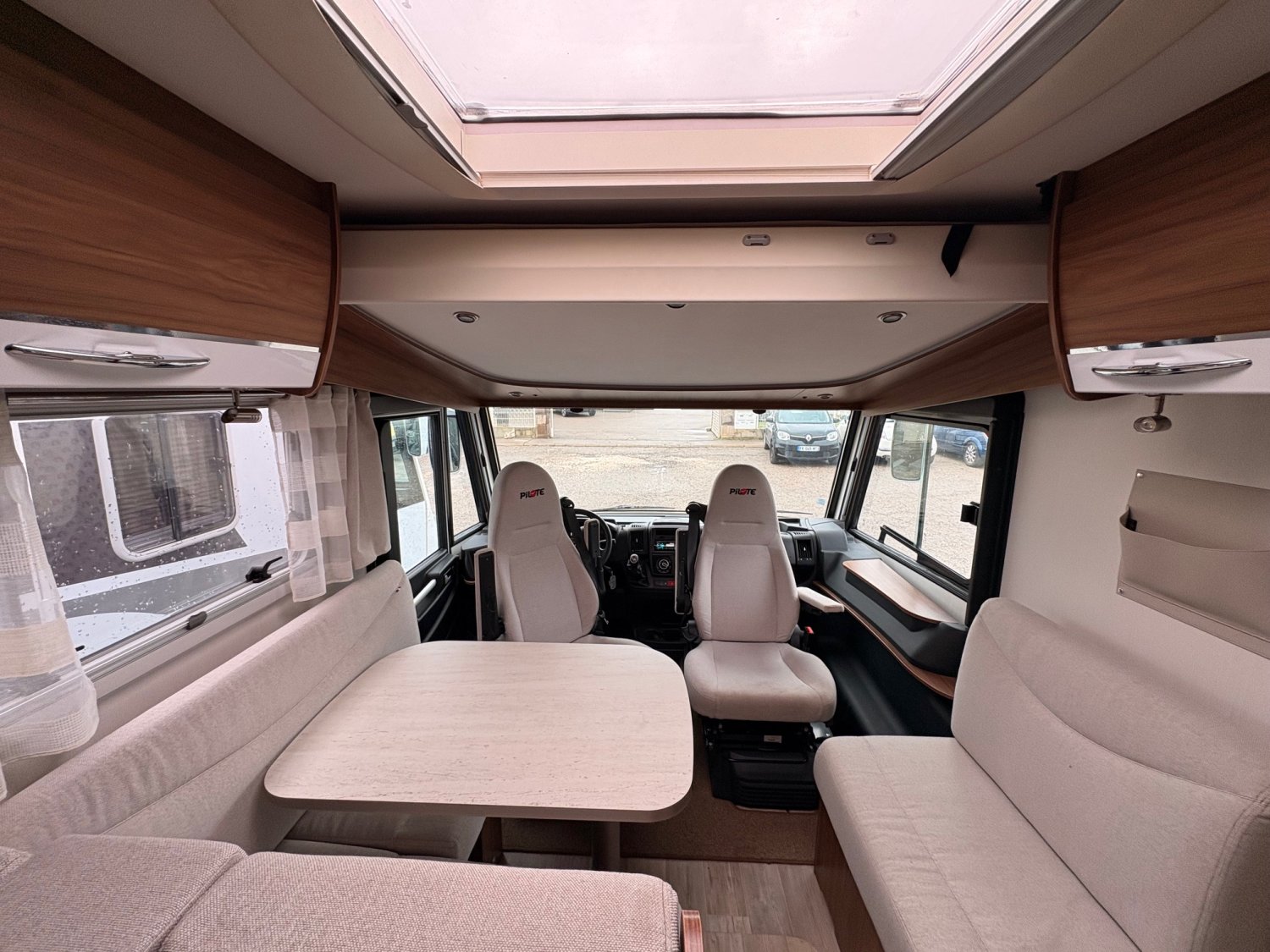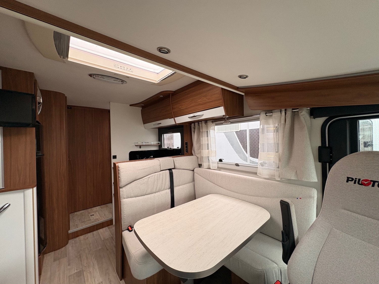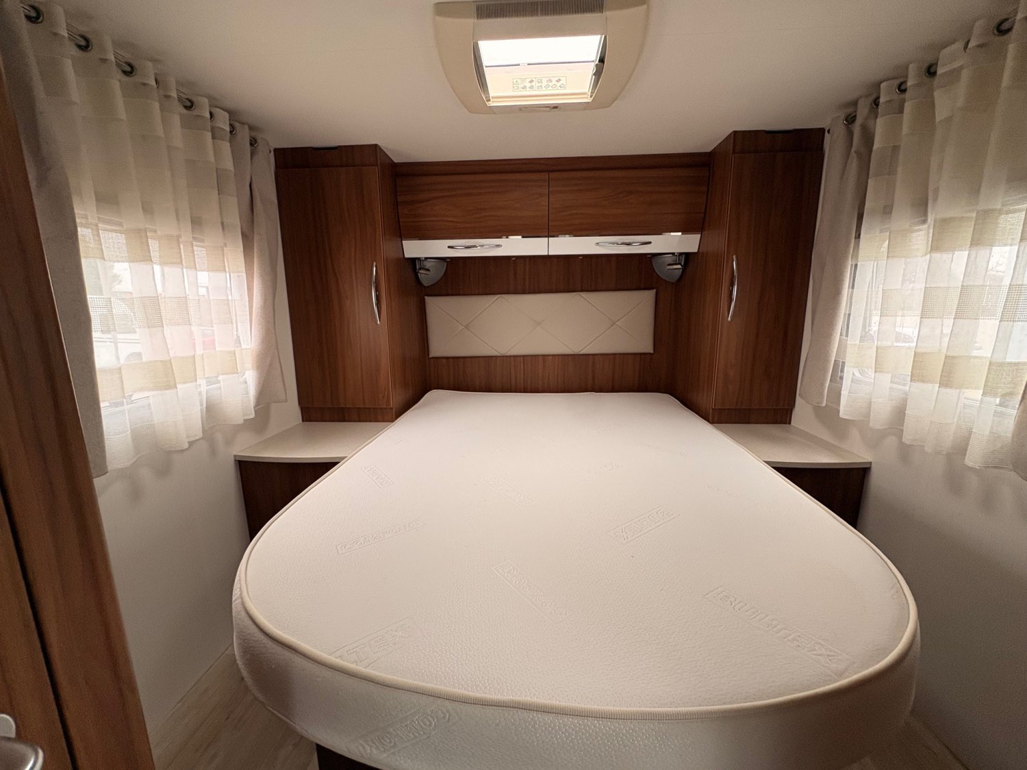 Camping-car grand confort, le G740 offre des espaces de vie harmonieux sur un double plancher service de 15 cm. Son grand lit central de 150 cm, sa salle de bains à double cloisonnement et son salon pour 5 convives font de cet intégral une valeur sûre.