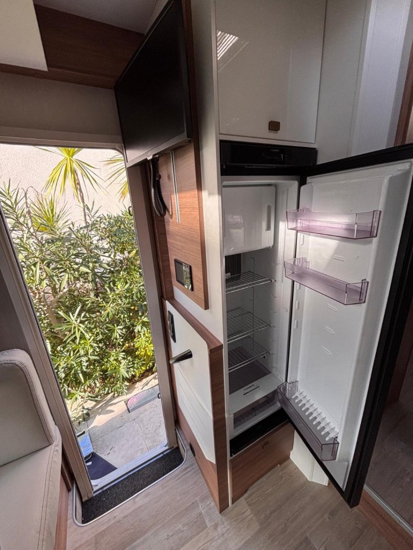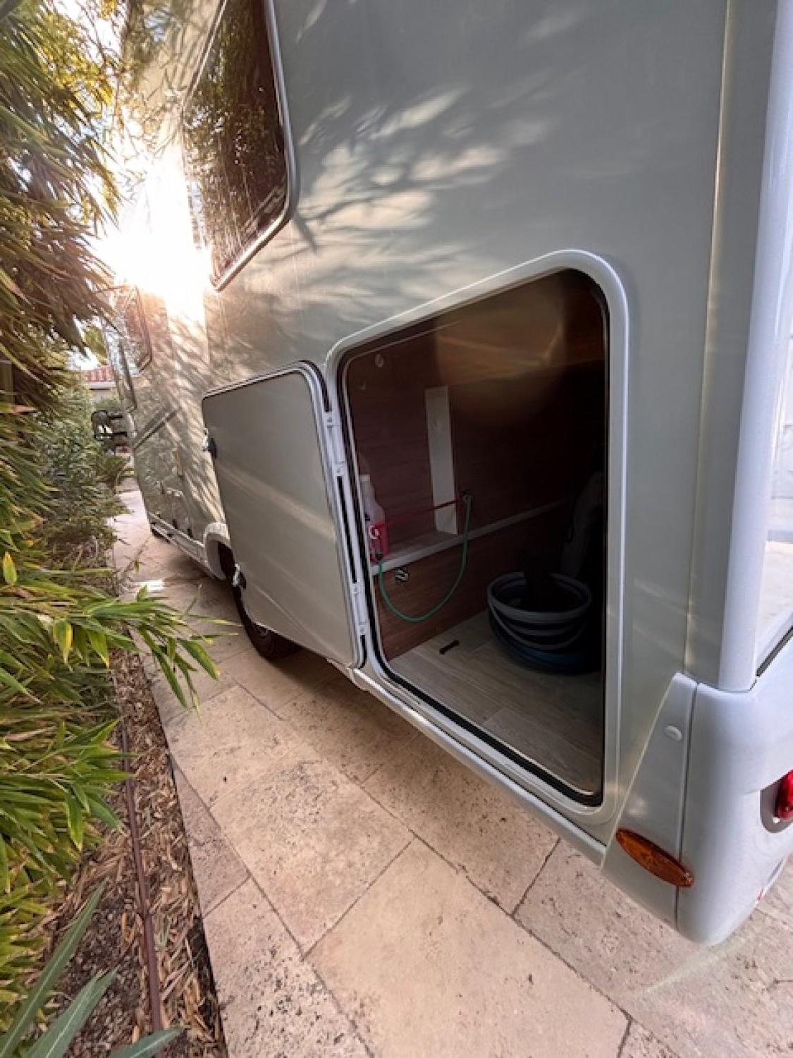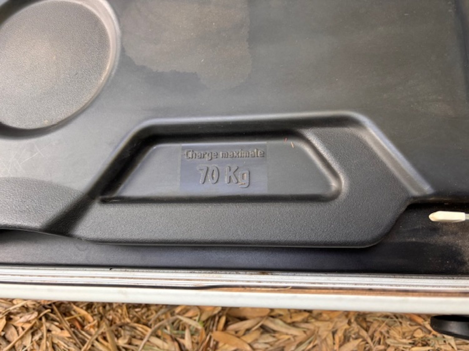 La grande soute traversante permet de stocker 2 vélo électriques pliants .
