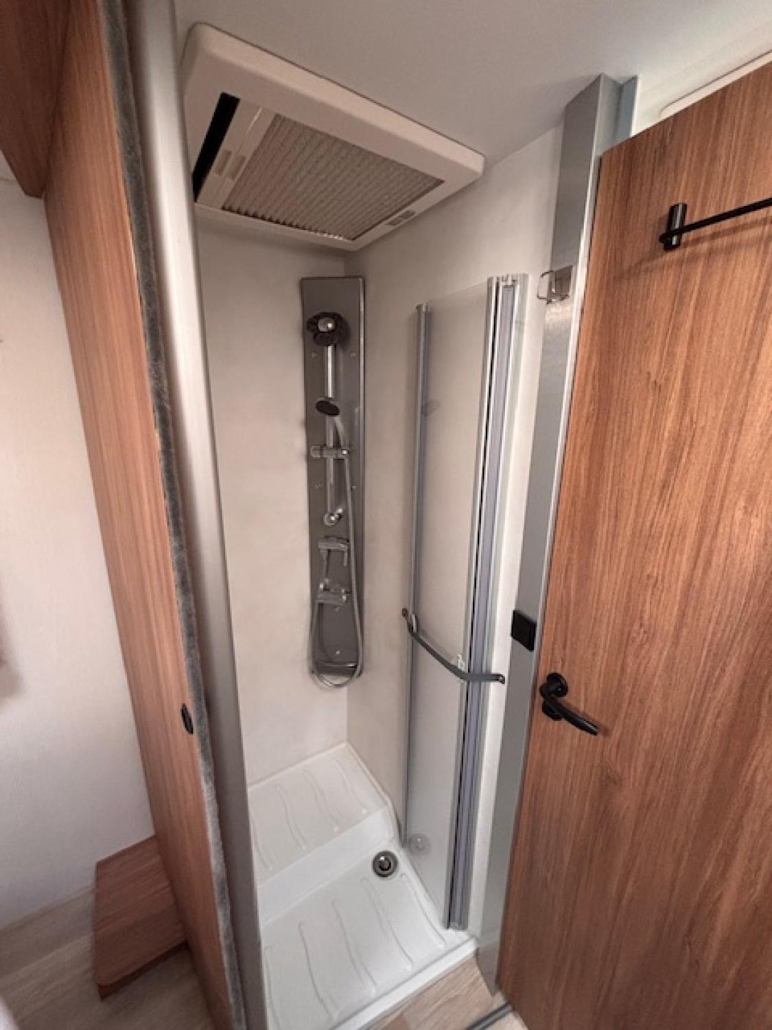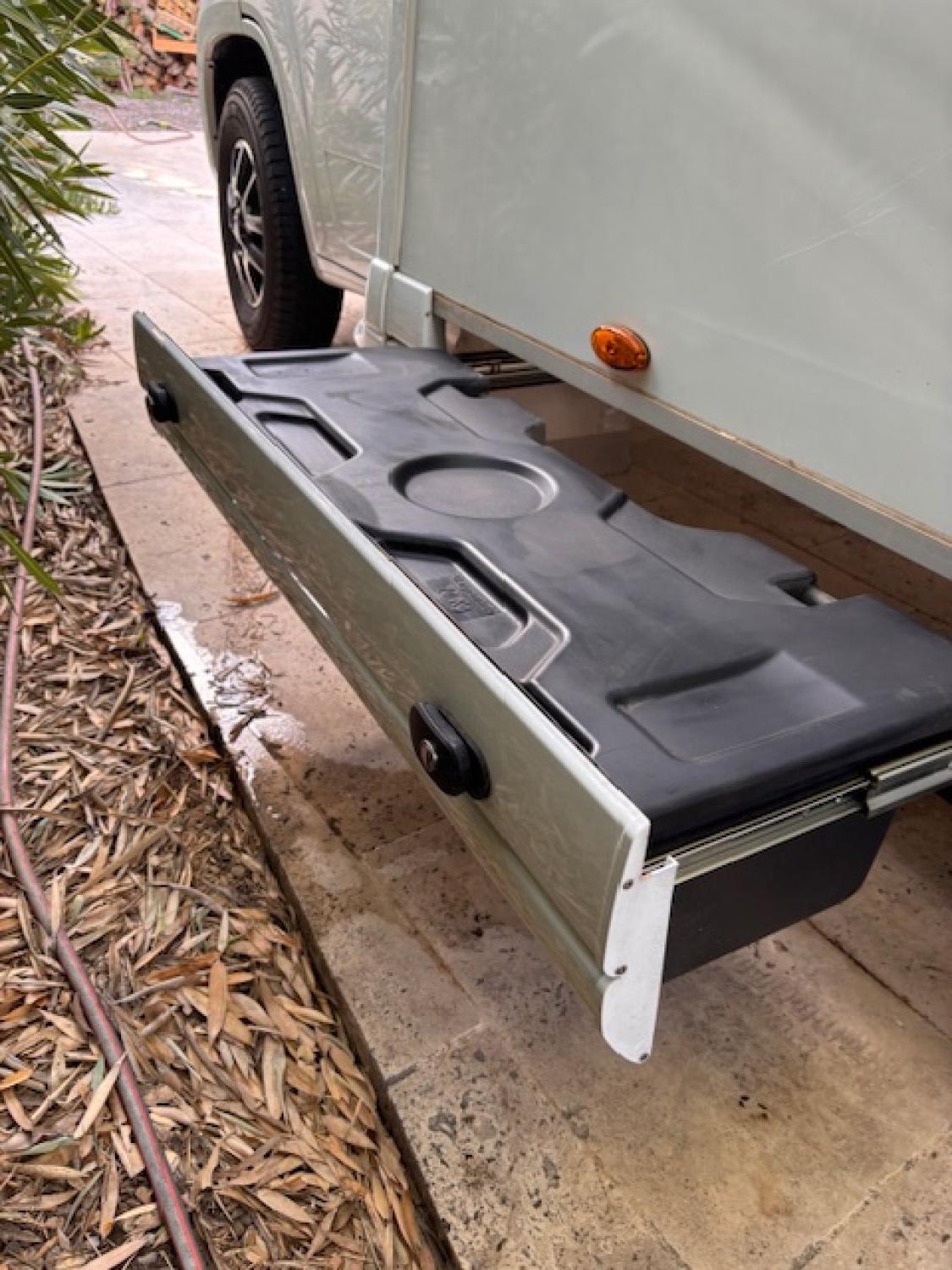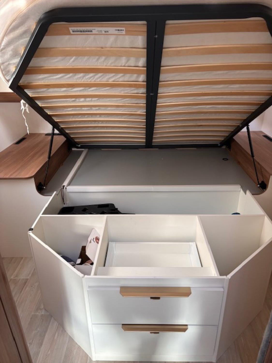 La grande soute traversante permet de stocker 2 vélo électriques pliants .