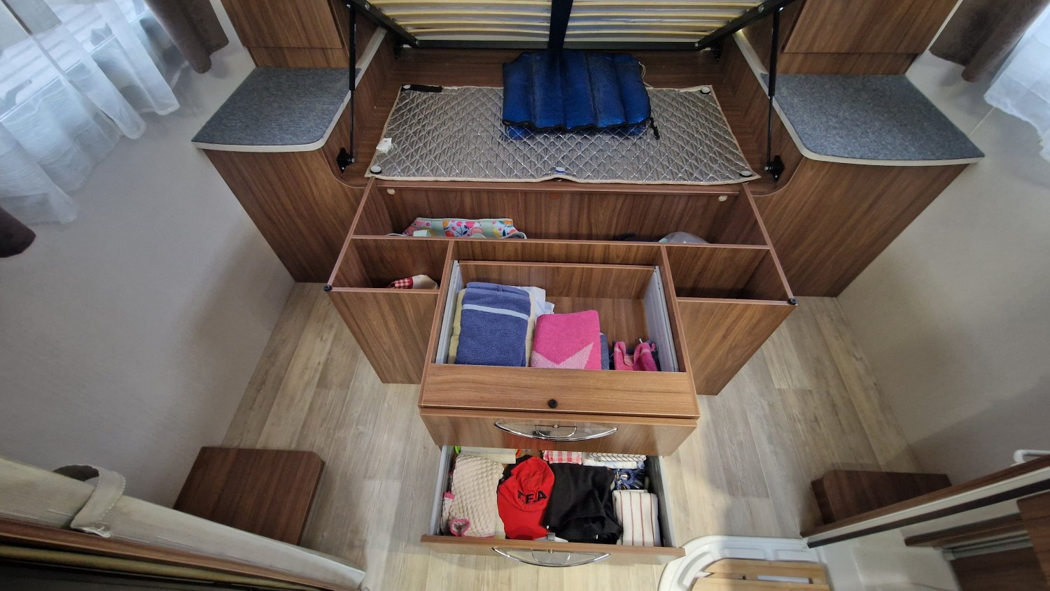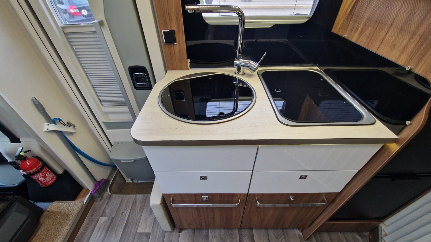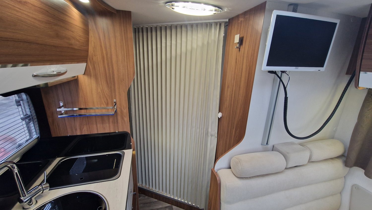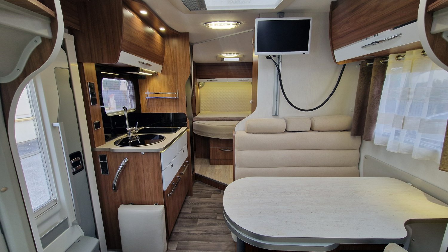 Une conception parfaite pour voyager en duo tout confort dans un format de poche : véritable couchage lit central permanent + lit d’appoint supplémentaire si nécessaire, cuisine bien équipée, fonctionnelle, avec de multiples rangements, un salon convivial et lumineux (Sun Roof, strapontin et sièges cabine pivotants), et pour compléter la dotation : une salle d’eau astucieuse 2 en 1, convertible douche / WC.