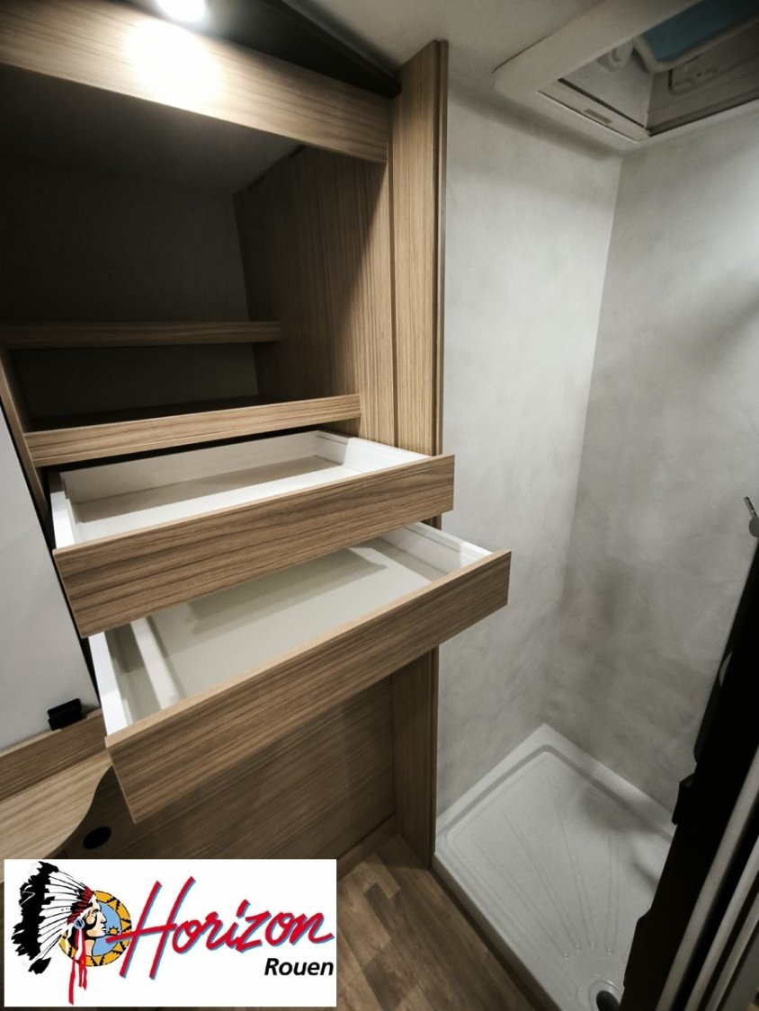Ce profilé compact de 6,90 m a été conçu pour répondre aux attentes des camping-caristes recherchant de vastes espaces de vie. Ils apprécieront l’utilisation optimisée du véhicule, notamment grâce aux dimensions généreuses du salon et du lit, à une cuisine spacieuse équipée d’un réfrigérateur de grande capacité, à un dressing fonctionnel et à une soute volumineuse, le tout pensé pour un aménagement des plus ergonomiques.