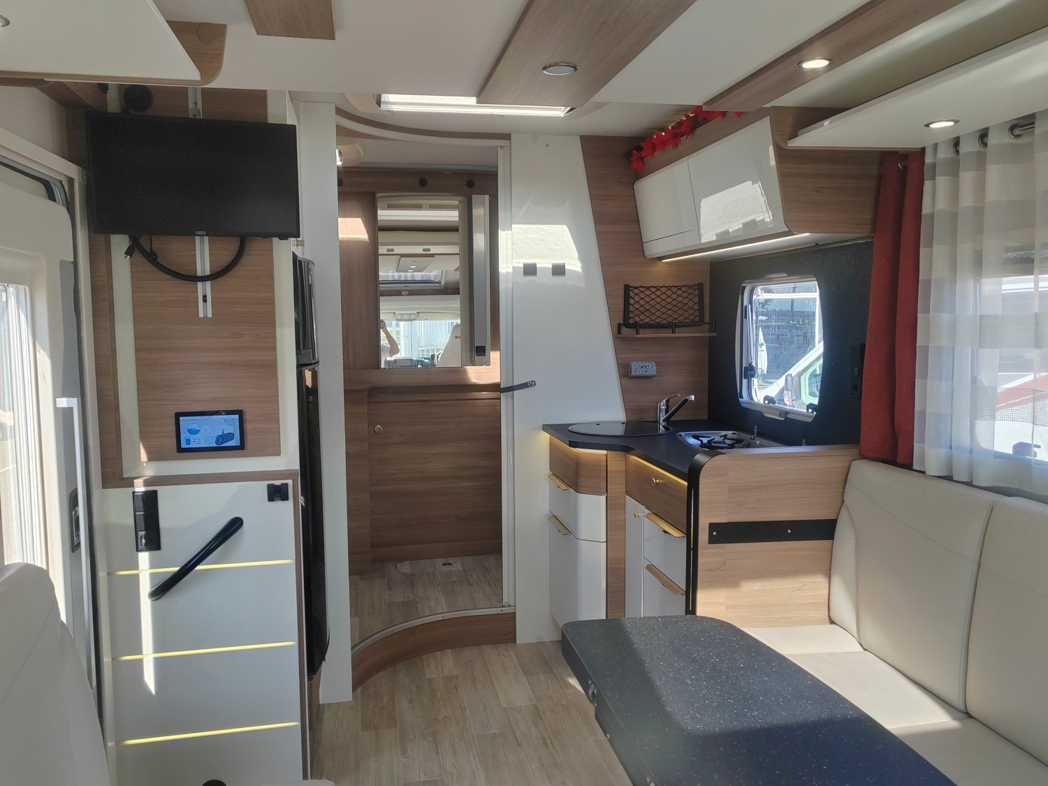 MARCHEPIED ELECTRIQUE, TAPIS CABINE, FRIGO-CONGELATEUR, PORTE CELLULE VITREE 2 POINTS, REGULATEUR-LIMITEUR DE VITESSE, HILL DESCENT, TRACTION +, CLIM CABINE, SIMILI CUIR, COMMANDE TRUMA INET, OCCULTANTS, MOUSTIQUAIRE DE PORTE, STATION MULTIMEDIA, FEUX DE JOUR LED, PANNEAU SOLAIRE, PARABOLE AUTOMATIQUE, TV, LIT PAVILLON ELECTRIQUE, CAMERA DE RECUL, 2 BATTERIES CELLULE, TIROIR BAS DE CAISSE, MOTORISATION 140CV, BAIES AFFLEURANTES, ECLAIRAGE EXTERIEUR, STORE EXTERIEUR
