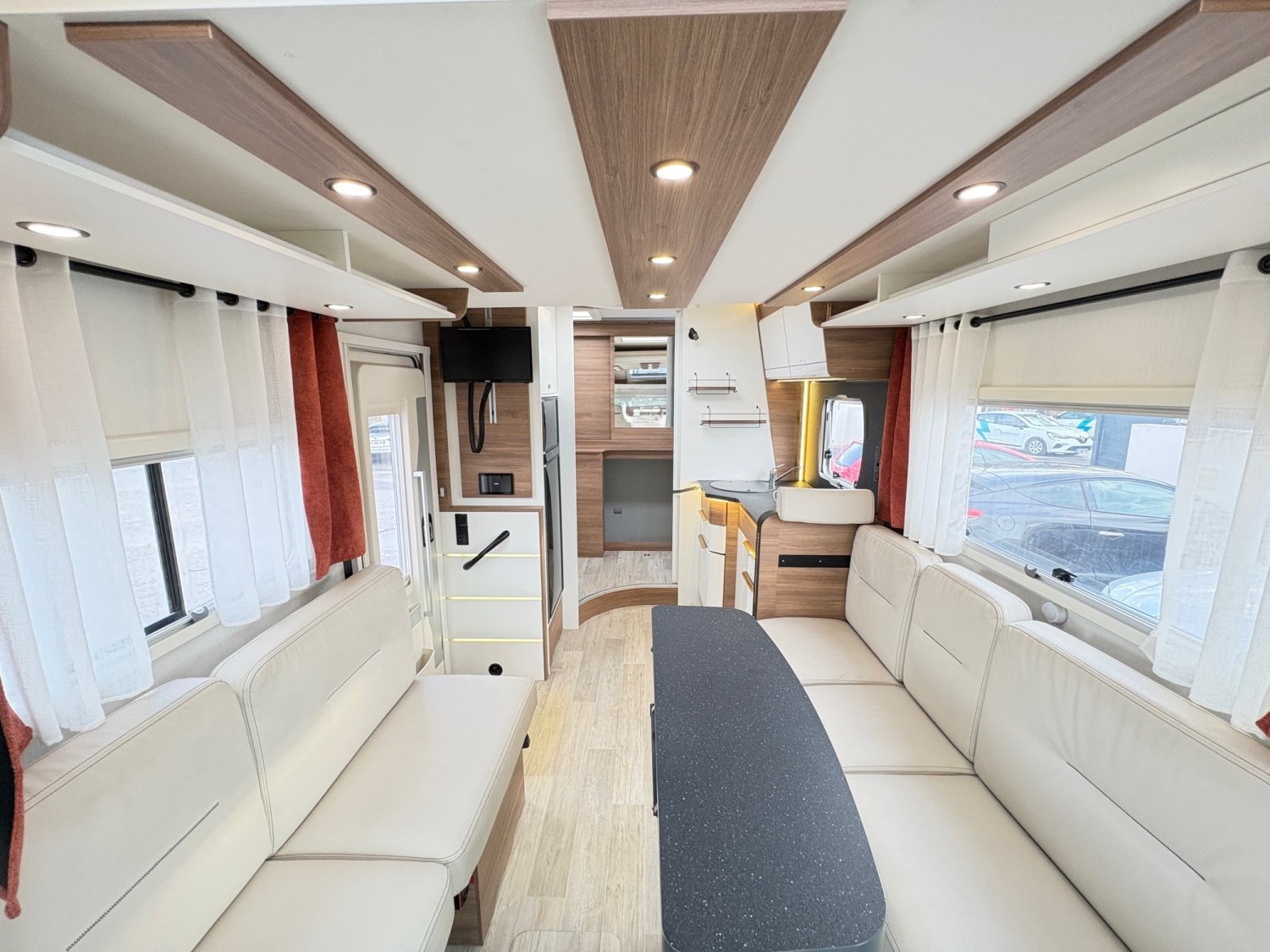 Ce profilé de moins de 7 mètres fait partie des modèles les plus spacieux de la marque. L’absence de lit fixe lui offre un agencement original et donne place à un salon XXL, de quoi partager de bons moments en famille ! Venez découvrir ce véhicule sur place !