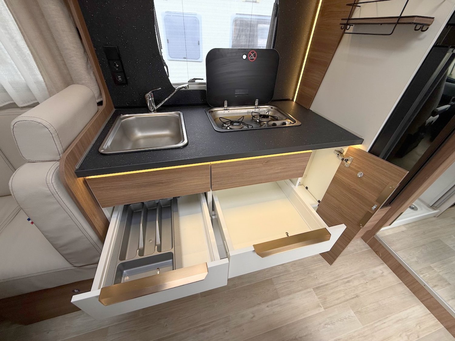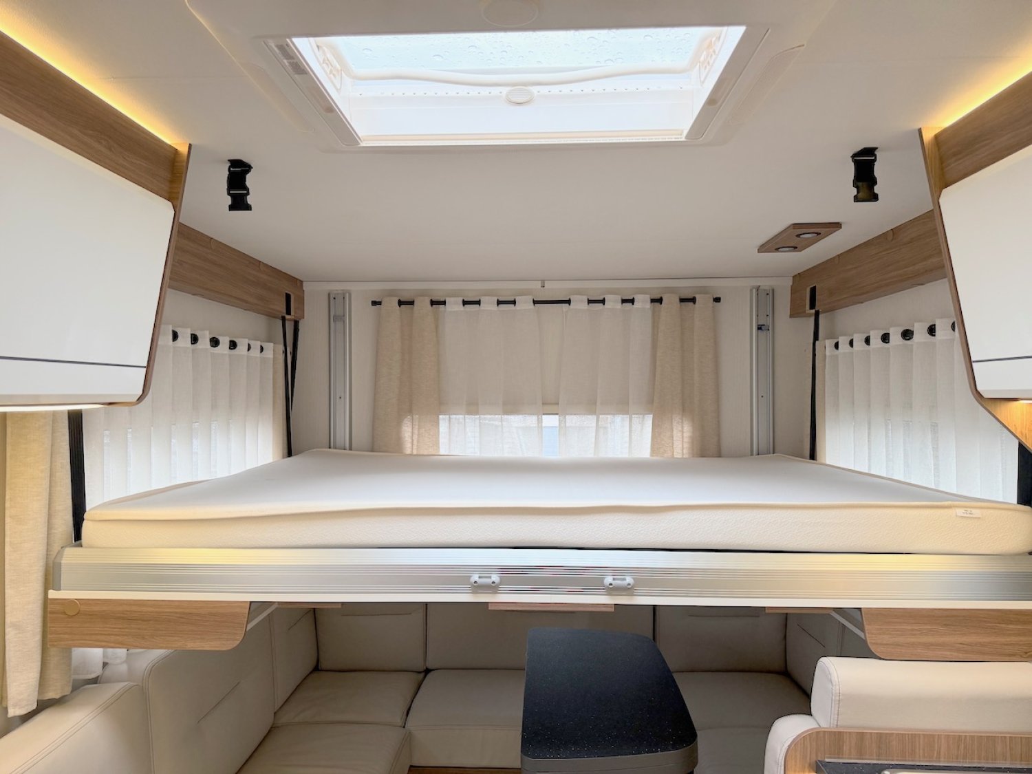 Comme pour l’ensemble des véhicules de notre parc, l’intégralité de la cellule est vérifiée. Les tests eaux, gaz, électricité, et le test étanchéité sont effectués. Le bon fonctionnement des accessoires est vérifié et notre atelier remédie à l’ensemble des défauts constatés.