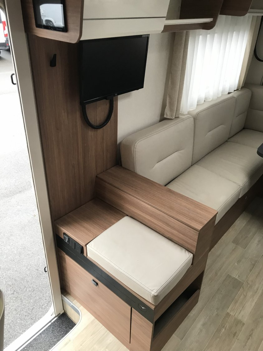 ANTENNE 4G, TELEVISION 22" AVEC SUPPORT, PORTE 2 VELOS, ANTENNE SAT AUTO, AUTORADIO DOUBLE DIN 8", CAMERA DE RECUL, STORE EXTERIEUR