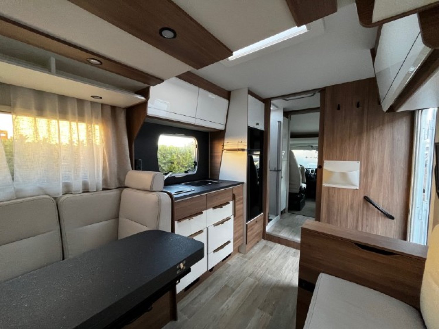 COMMANDE AU VOLANT, VOLANT ET POMMEAU CUIR, FRIGO TRIMIX DOMETIC, STATION MULTIMEDIA, CAMERA DE RECUL, SIMILI CUIR, NICHE DEGAGEE, STORE EXTERIEUR, PANNEAU SOLAIRE, MARCHE PIED ELECTRIQUE, CHAUFFAGE COMBI GAZ, ANTENNE SAT AUTO, TV, STORES OCCULTATION CABINE ET FENETRES, JANTES ALU 16", CLIM PORTEUR
