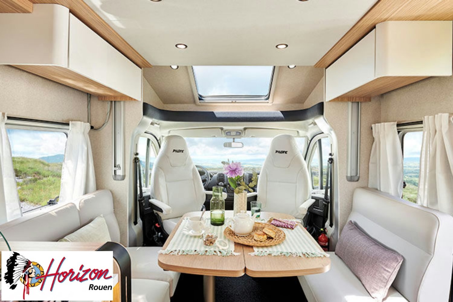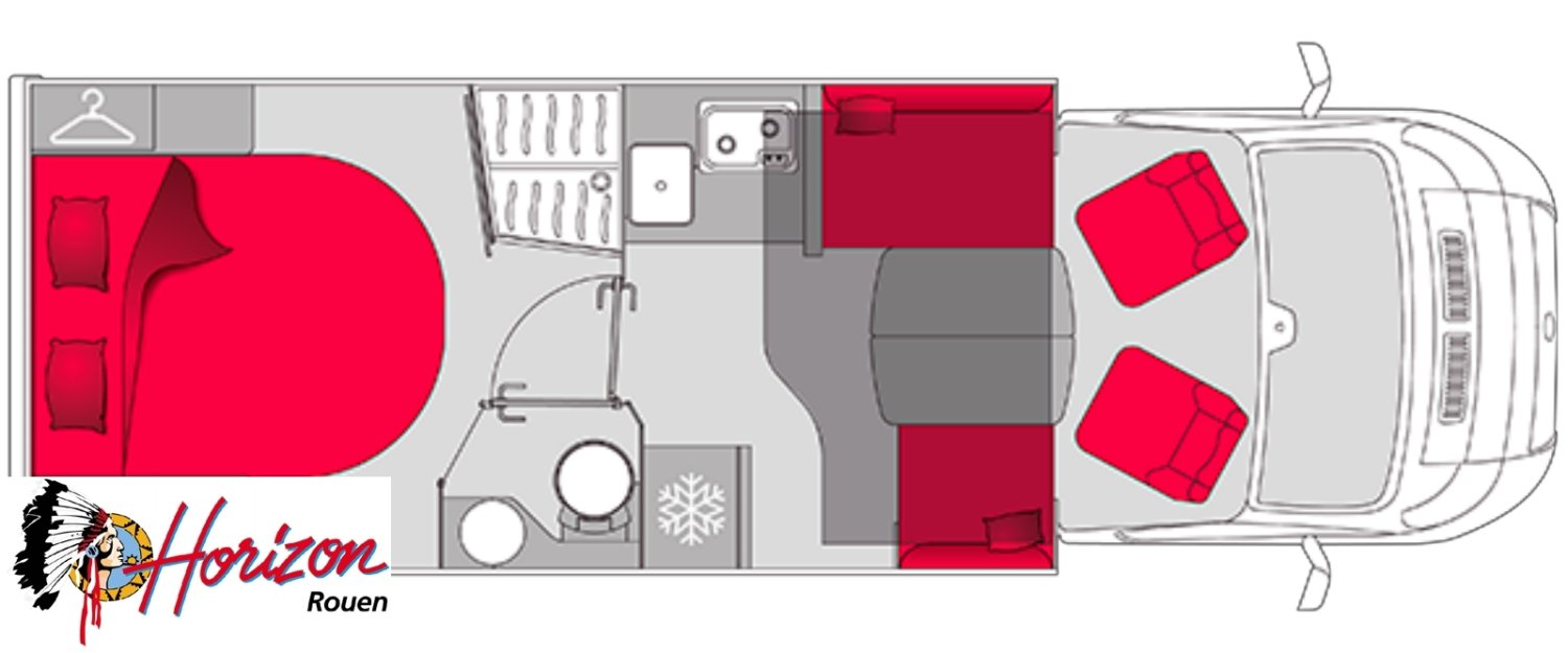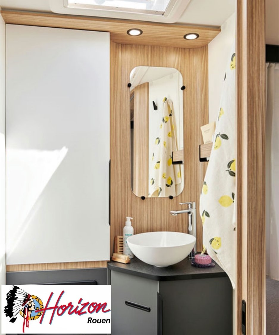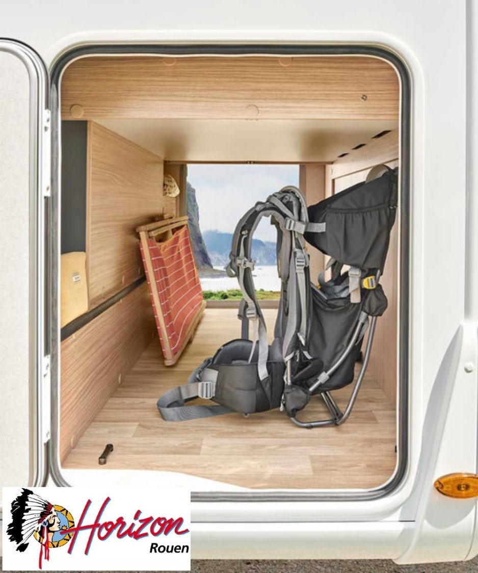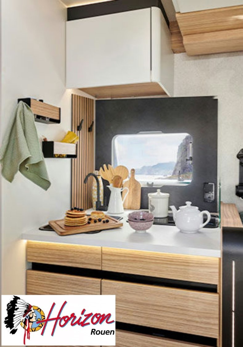 LES ÉQUIPEMENTS INCLUS :• Motorisation 2,2 L - 140 ch - boîte automatique.• Châssis Fiat 3,5 T.• Cabine noire. NOUVEAU• PACK JANTES : jantes alliage 16”, volant en simili, aérateurs gris aluminium.• PACK MÉDIA 7” : autoradio 7” Pioneer® , DAB, AppleCar / Android Auto, caméra de recul, hautparleursdans la cabine et la cellule.• Batterie lithium 210 Ah et 2 panneaux solaires 100 W monocristallin TOPCon hauteperformance. NOUVEAU• Booster pour une charge rapide de la batterie• Chauffage hybride Truma® D 6E (Diesel / 230 V). NOUVEAU• Réfrigérateur à compression Thedford® 150 ou 158 l, selon modèle. NOUVEAU• Store banne.• Tiroir bas de caisse.• Douchette eau froide/chaude dans la soute arrière.• Lit pavillon électrique avec sommier à lattes.• Sellerie bi-ton et bi-matière simili et tissu «Sand». NOUVEAU• Ambiance Pyla