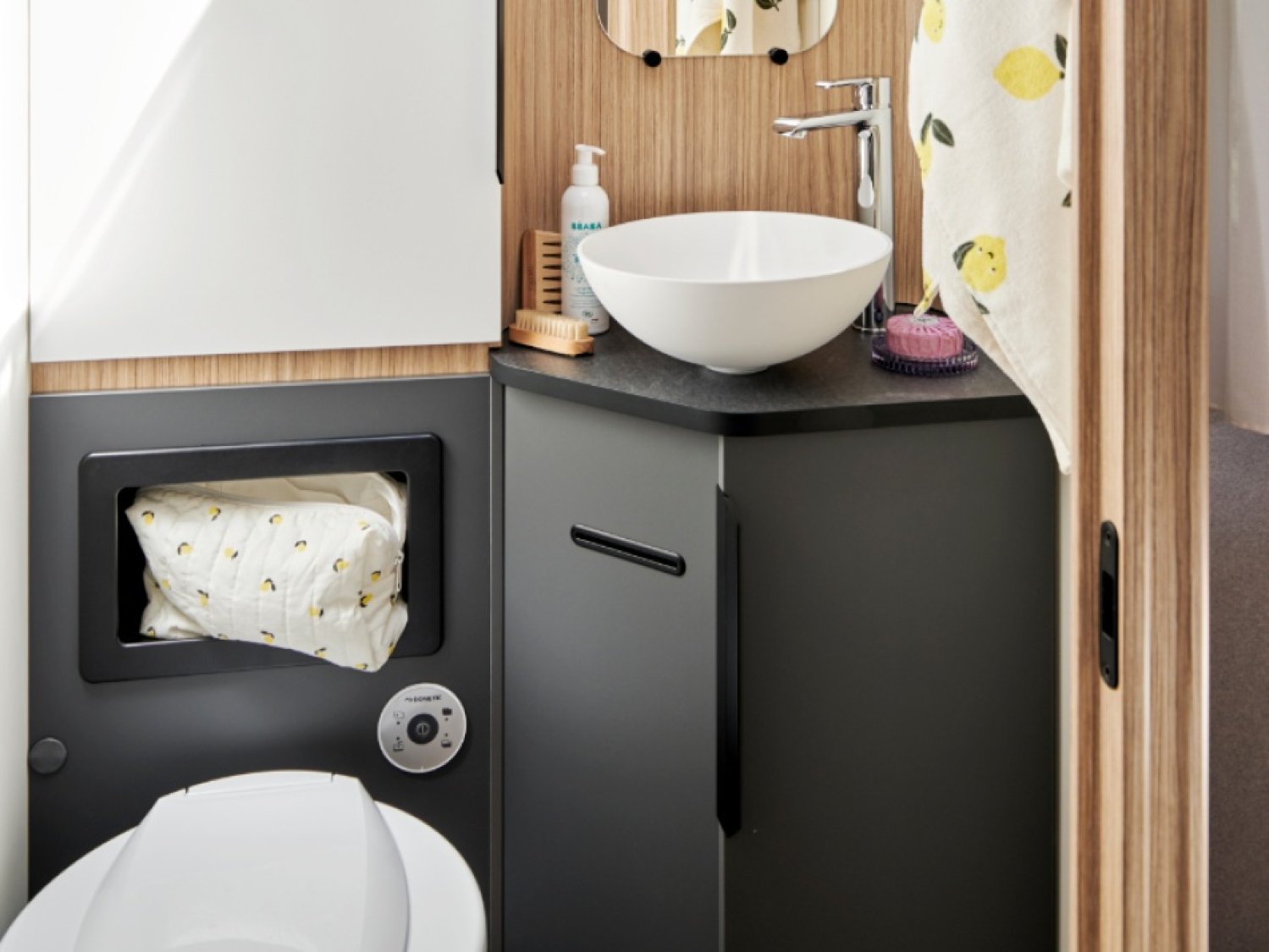 PACK GRAND CONFORT : ECLAIRAGE+PRISE 230+RAIL SOUTE DOUCHE EXTERIEURE INVERSEUR GAZ CHAUFF ROULANT RESER. EAU USEES ISOLE CHAUFFE TIROIR BAS DE CAISSE STORE BANNE CAILLEBOTIS DANS DOUCHE