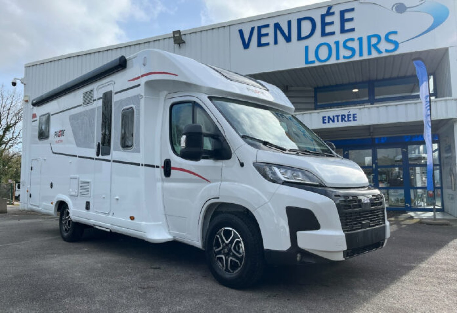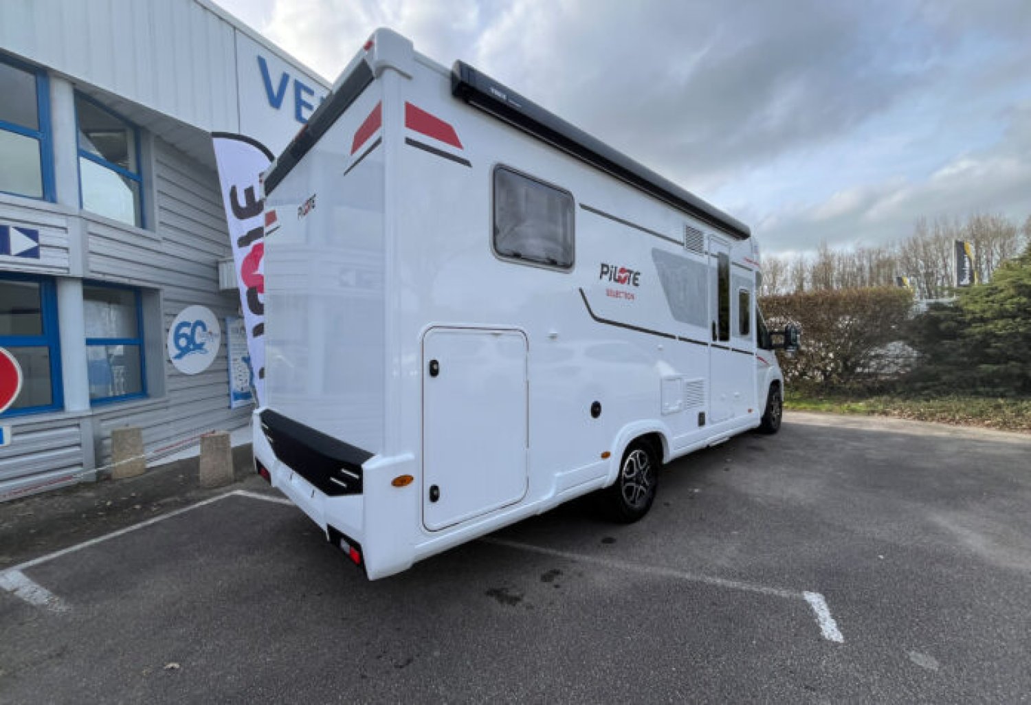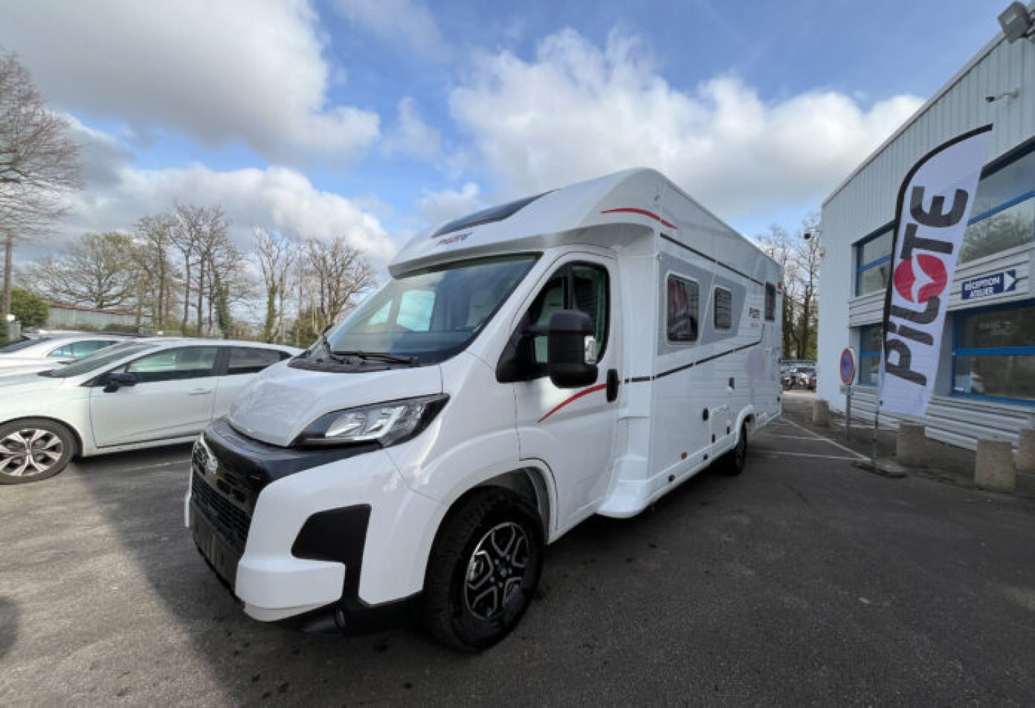 Le Pilote FGJ 720 Selection est un camping-car profilé haut de gamme, reconnu pour son confort et sa fonctionnalité. Implanté sur des lits jumeaux à l’arrière, il offre un bel espace de couchage modulable, ainsi qu’un grand volume de rangement avec soute garage.