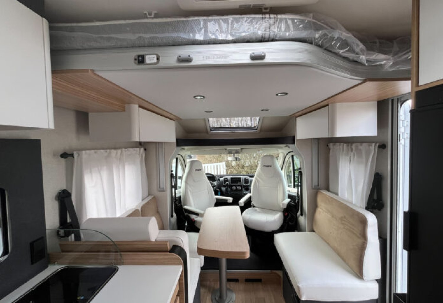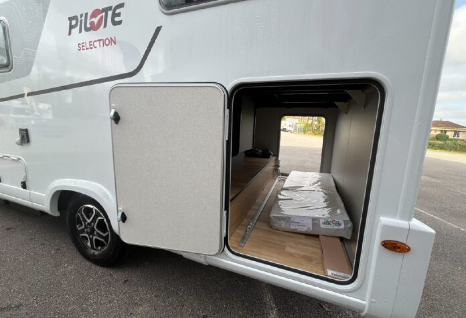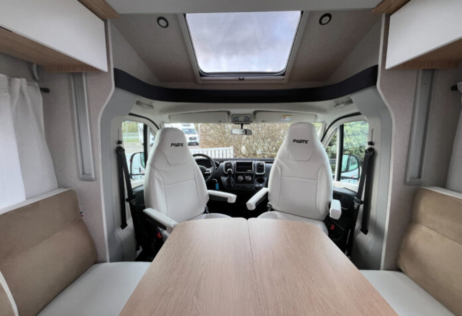 Le Pilote FGJ 720 Selection est un camping-car profilé haut de gamme, reconnu pour son confort et sa fonctionnalité. Implanté sur des lits jumeaux à l’arrière, il offre un bel espace de couchage modulable, ainsi qu’un grand volume de rangement avec soute garage.