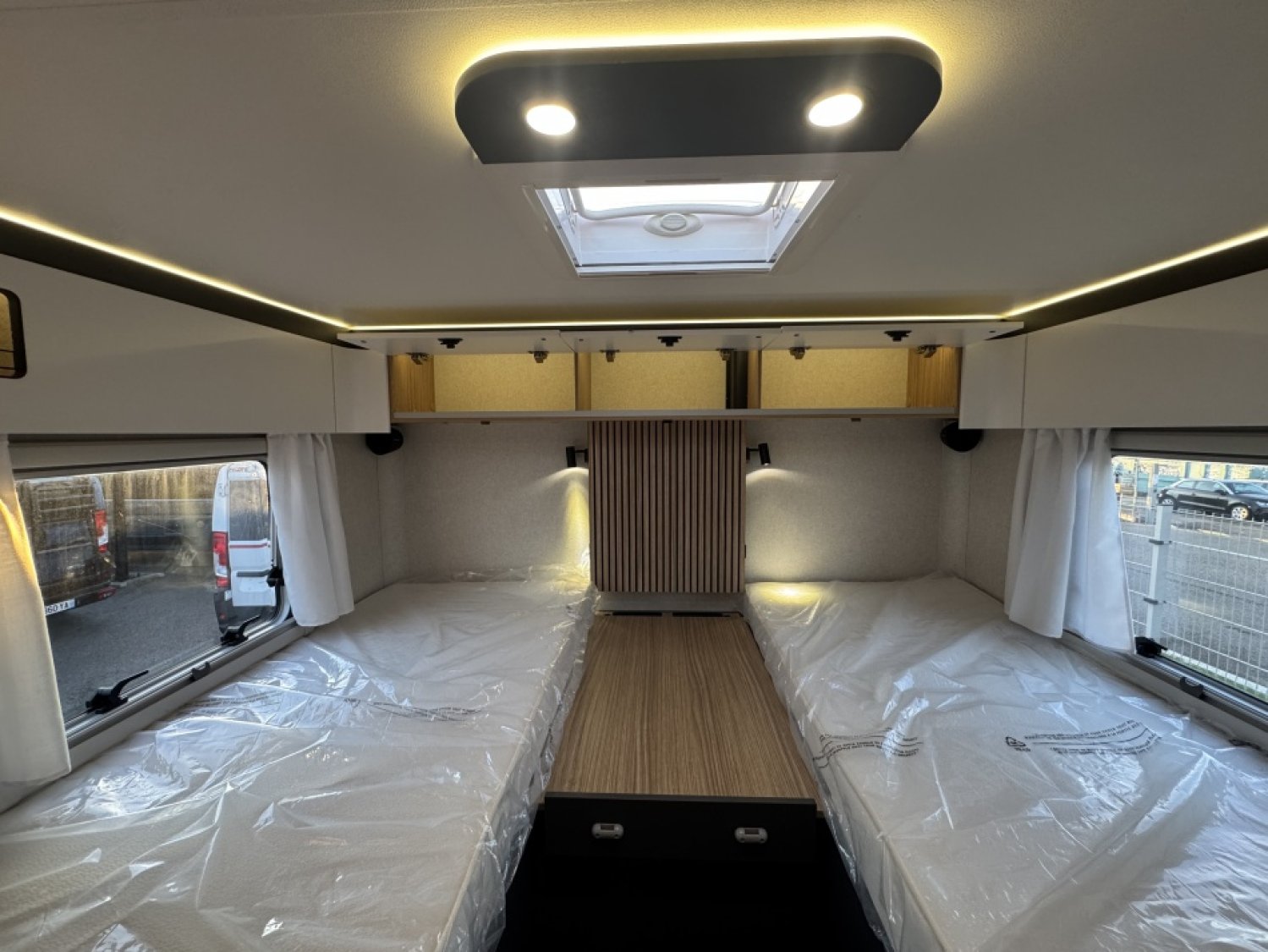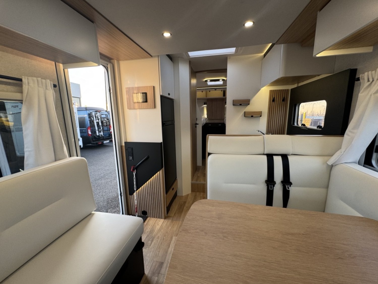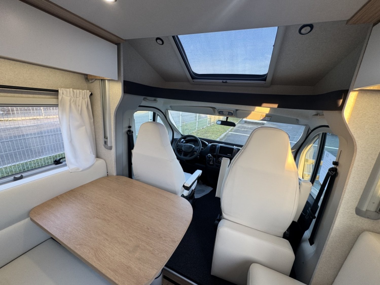 Parce qu’il représente l’équilibre parfait entre espace, confort et technologie. Ses lits jumeaux modulables, son lit pavillon électrique, et son salon face à face offrent un espace de vie lumineux et aéré. Les finitions Pilote garantissent une isolation haut de gamme, un mobilier robuste, et un design moderne pour voyager dans un confort absolu. C’est le choix idéal pour les couples ou familles recherchant un camping-car spacieux, élégant et fiable, conçu pour les longs voyages comme pour les escapades du week-end.