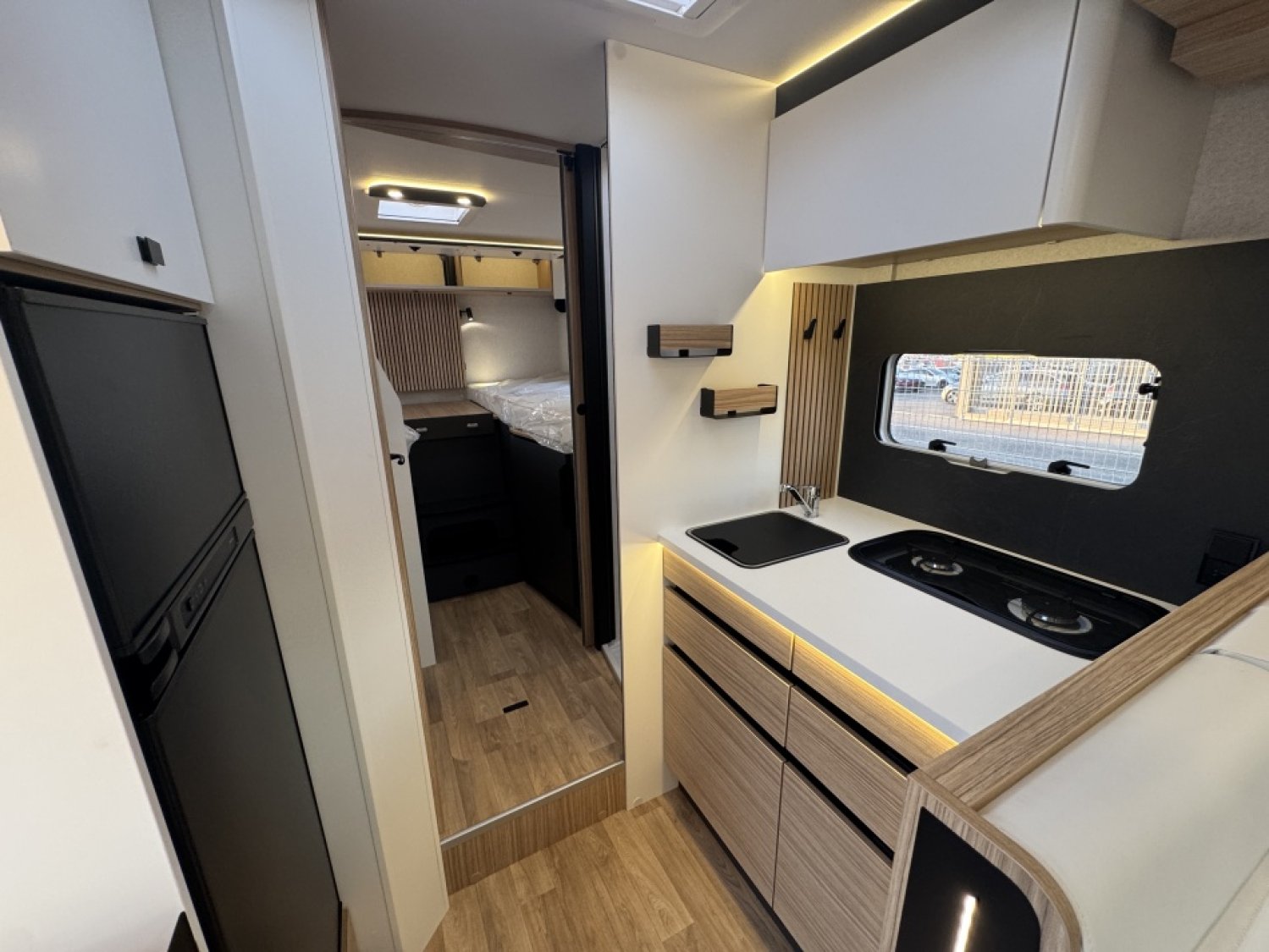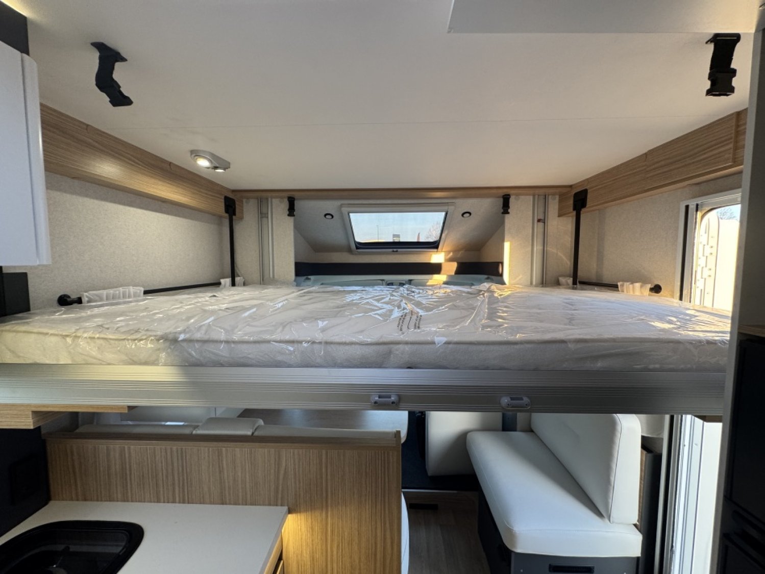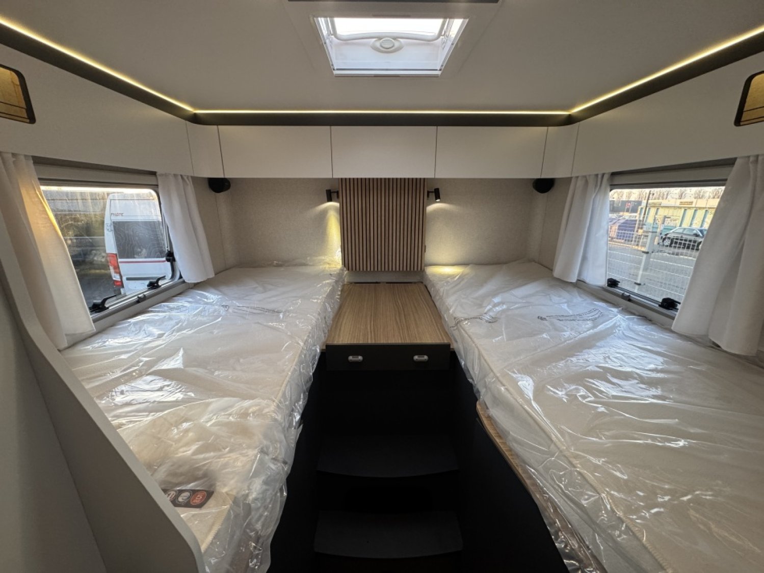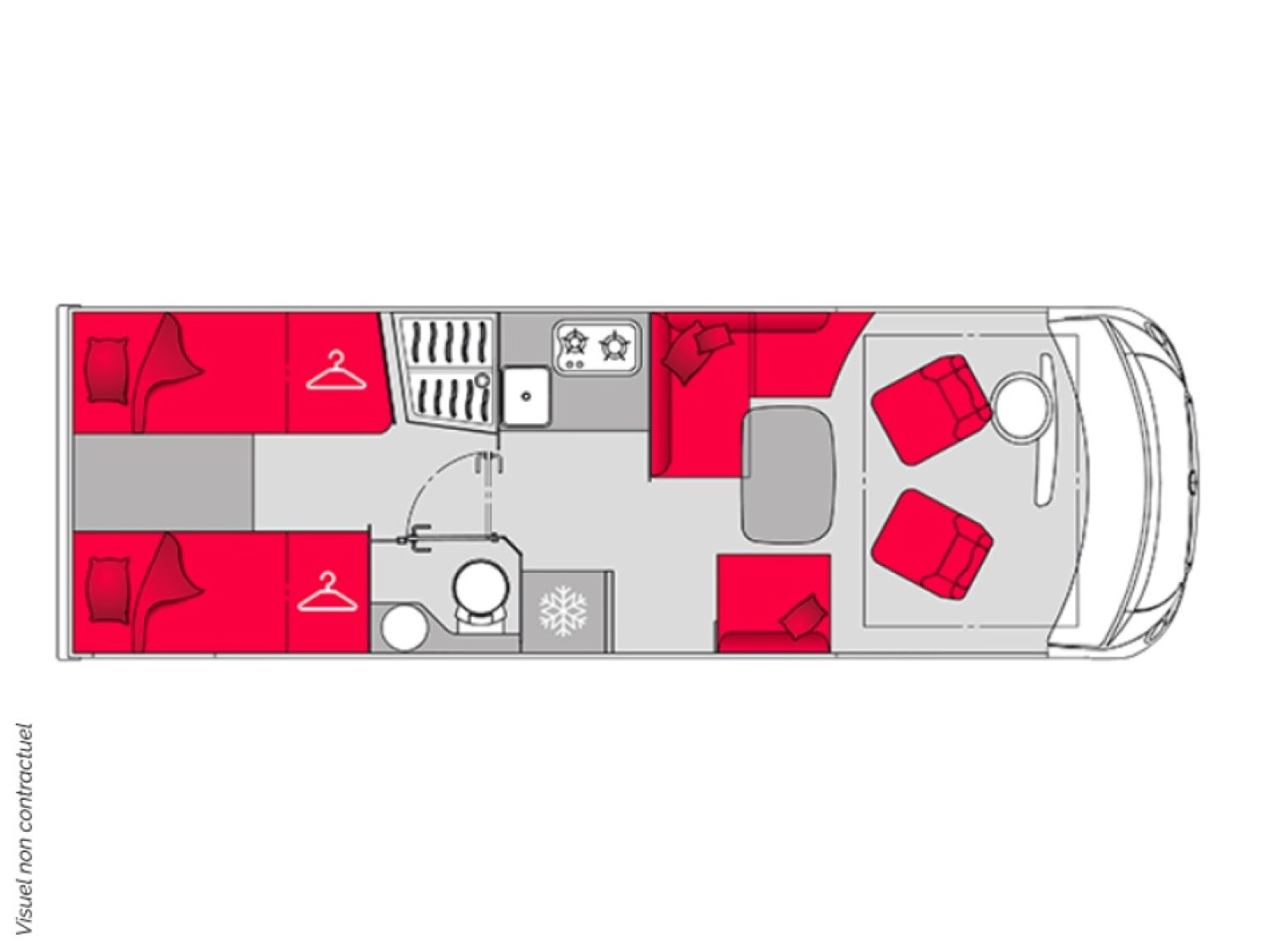 Parce qu’il représente l’équilibre parfait entre espace, confort et technologie. Ses lits jumeaux modulables, son lit pavillon électrique, et son salon face à face offrent un espace de vie lumineux et aéré. Les finitions Pilote garantissent une isolation haut de gamme, un mobilier robuste, et un design moderne pour voyager dans un confort absolu. C’est le choix idéal pour les couples ou familles recherchant un camping-car spacieux, élégant et fiable, conçu pour les longs voyages comme pour les escapades du week-end.