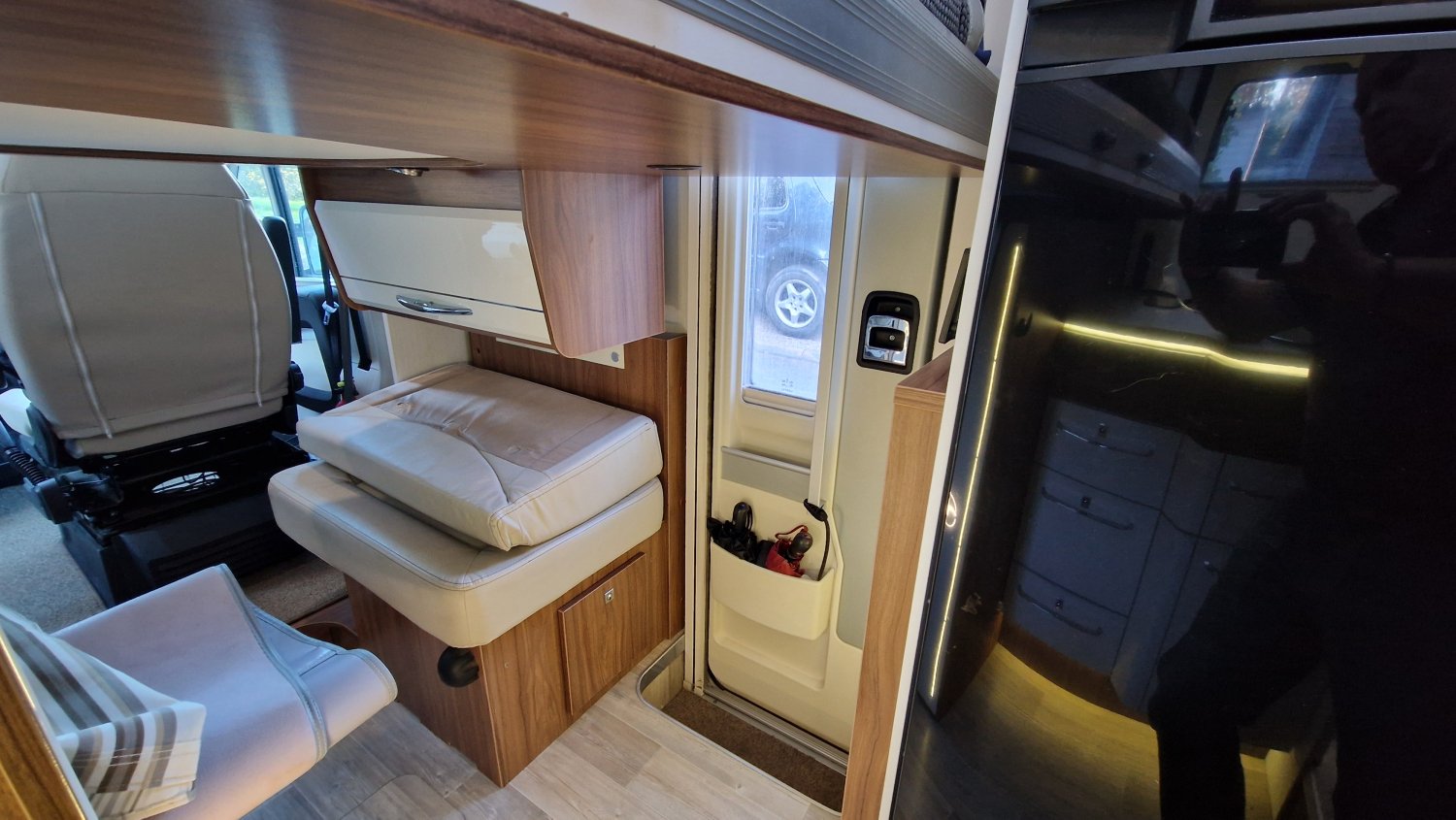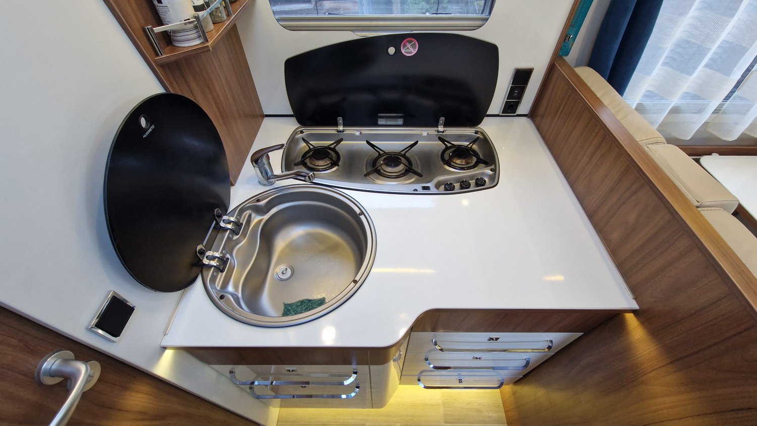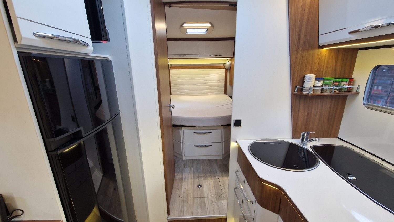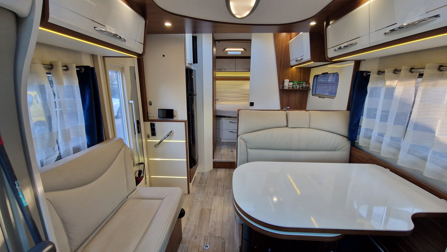 CHAUFFAGE COMBI TRUMA 6, STORE EXTERIEUR 4.5M, GAZINIERE 3 FEUX, TIROIRS FERMETURE RALENTIE, PORTE SEPARATRICE, CUISINE EN L, DOUCHE ET WC SEPARES, ECLAIRAGE LED, MOQUETTE CABINE, MOUSTIQUAIRE DE PORTE CELLULE, PORTE VELO, REFRIGERATEUR TRI MIX, STORES PLISSES DE CABINE, TABLE TELESCOPIQUE, SIEGE AGUTI, SUN ROOF OUVRANT