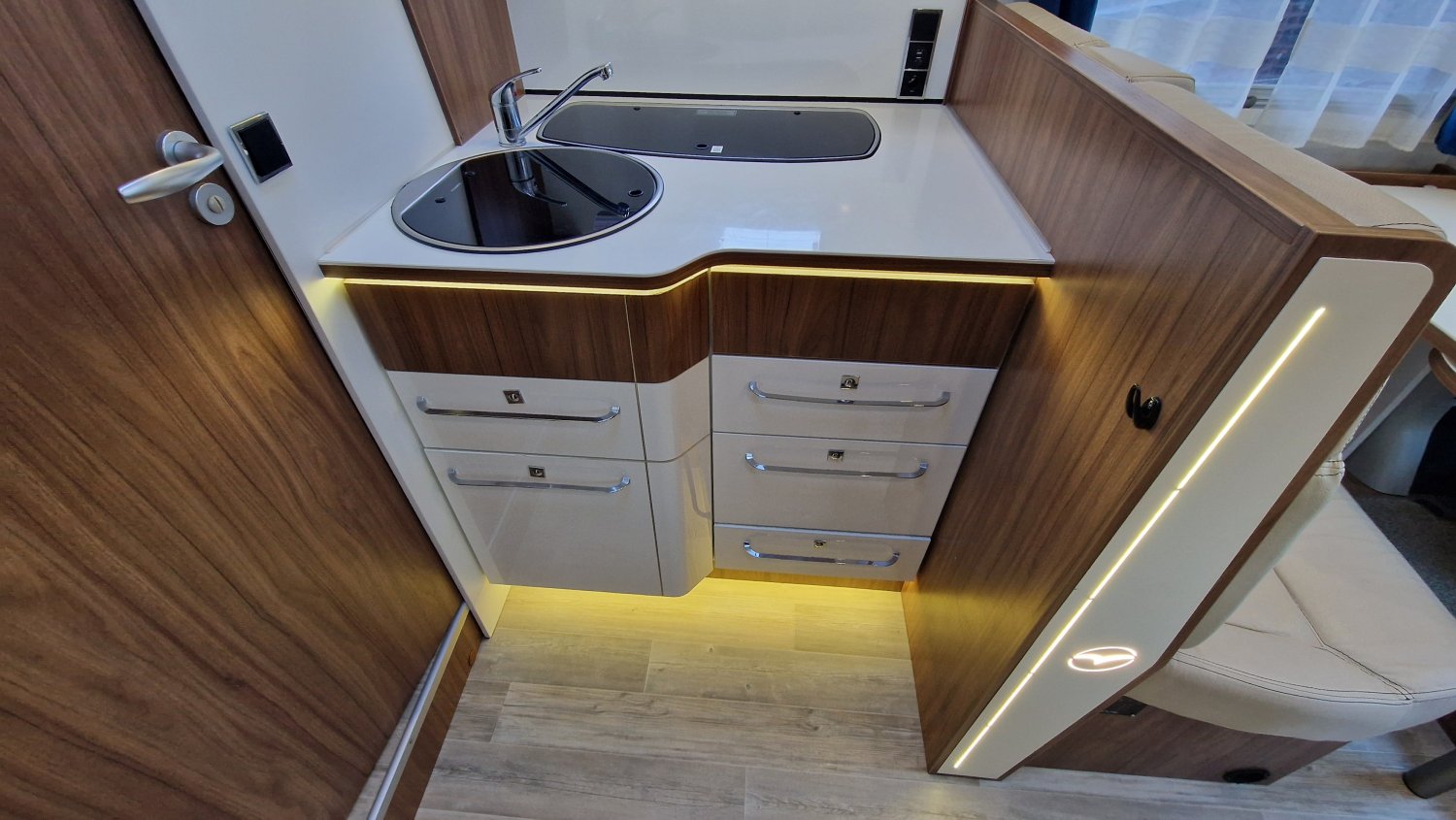 Embarquez à bord et profitez d’une implantation parfaite pour accueillir confortablement quatre personnes : modularité des couchages avec lit central permanent et lit de pavillon électrique, cuisine toute équipée fonctionnelle avec multiples rangements, salon spacieux et lumineux (Sun Roof ouvrant) et espace balnéo avec cabine de douche et cabinet de toilette indépendants.