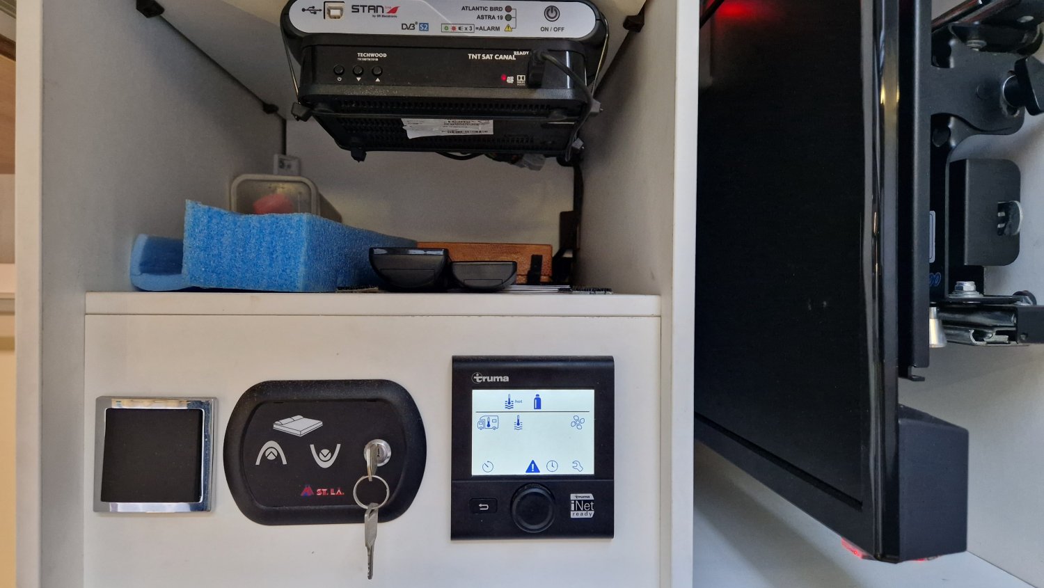 ANTENNE HERTZ DIRECTIONNELLE, ANTENNE SATELLITE AUTO 65, TV LCD 19, AUTORADIO, CAMERA DE RECUL COULEUR, DECODEUR TNT SAT