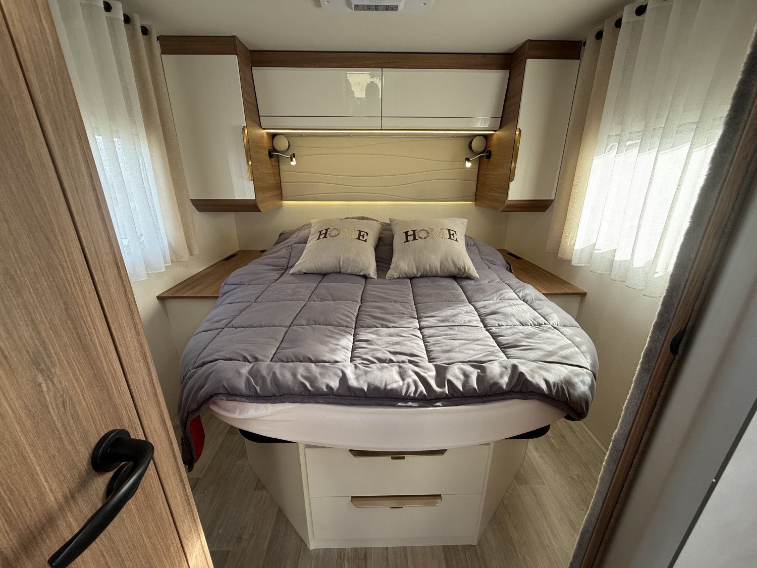 Conçu pour voyager en toute sérénité toute l’année, ce modèle bénéficie de la structure Pilote ISOTEK, d’une isolation renforcée, d’un chauffage Truma 6, de réservoirs protégés hors-gel et d’un ensemble énergétique complet. Il est doté de jantes aluminium 16’’, de suspensions pneumatiques, du système Traction + d’un rafraîchisseur d’air, d’un tiroir bas de caisse, d’un store extérieur de 4,50 m, de 2 TV connectées…