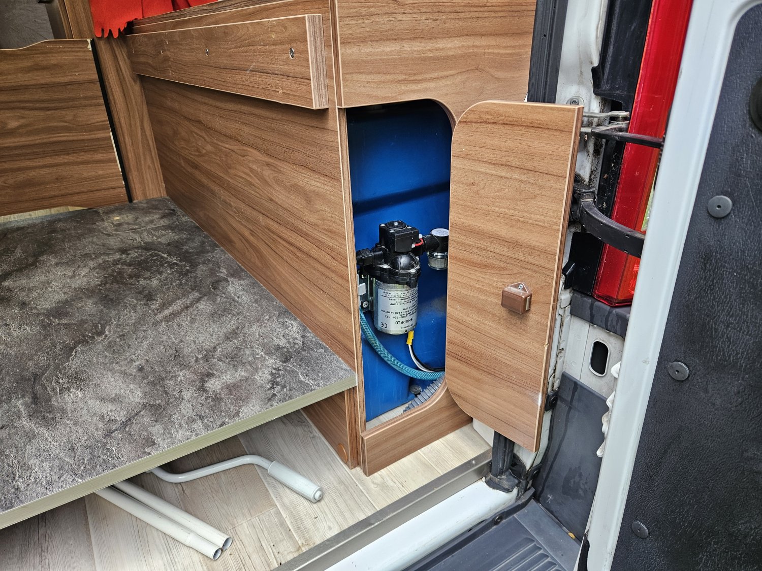Le réservoir d'eau propre est de 130 Litres et les parois sont en aluminium.