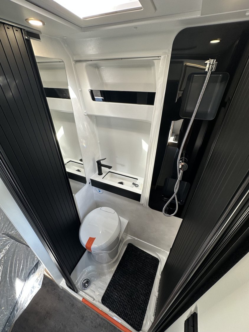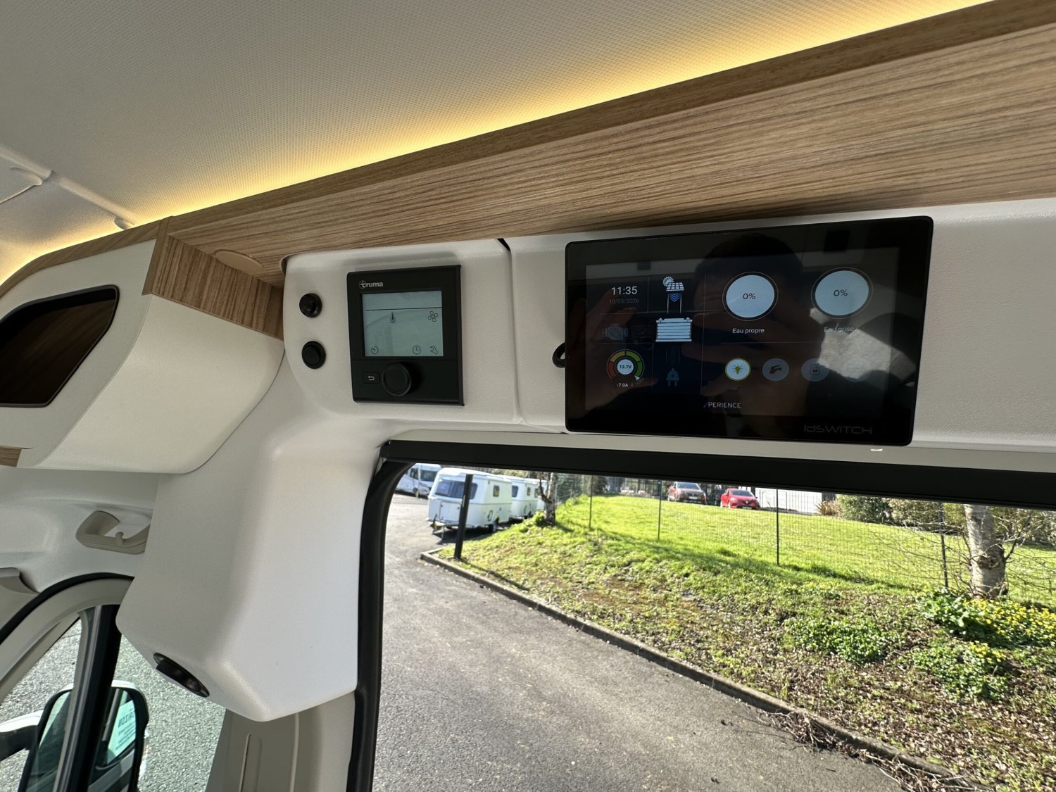 4 places carte griseSalon avant avec sièges cabine pivotantsGrand lit arrière modulable jusqu’à env. 200 × 200 cmPossibilité de couchage transversal ou lits jumeauxCouchage supplémentaire dans le salon avantCuisine équipée avec évier et plaque de cuissonRéfrigérateur à compression 138 LCabinet de toilette central avec doucheBatterie lithium 200 AhBooster de charge 40 ADeux panneaux solaires extra-platsChauffage Truma dieselRéservoir eaux usées chaufféAutoradio Pioneer 7″ DAB avec Apple CarPlay et Android AutoCaméra de reculJantes alliage 16″Volant simili cuirSellerie premium tissu / similiStore extérieurDouchette eau chaude / eau froide dans la souteFixations IsofixÉclairage LED intérieur et extérieurNombreux rangements et soute modulable