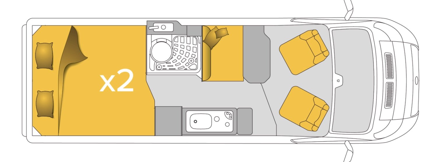 - Pack Grand Confort Fourgon: 1 400 € (Store banne, Caillebotis douche, Marche-pied électrique, tapis de soute)