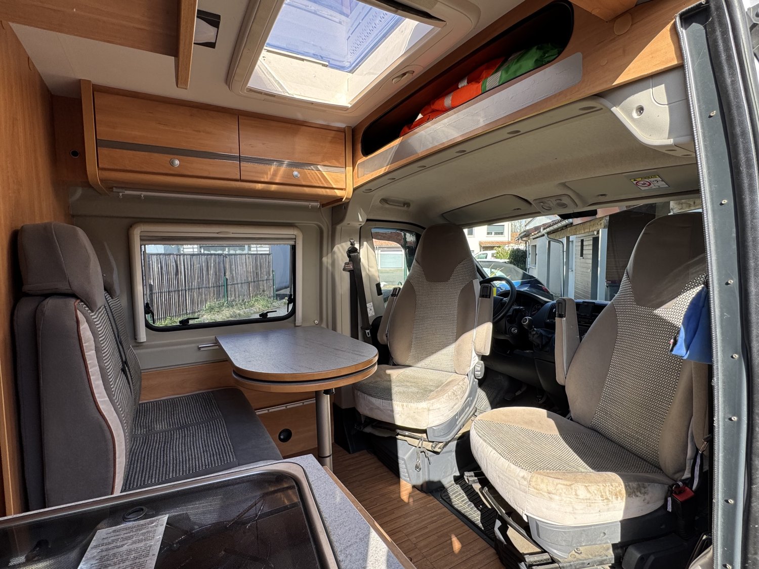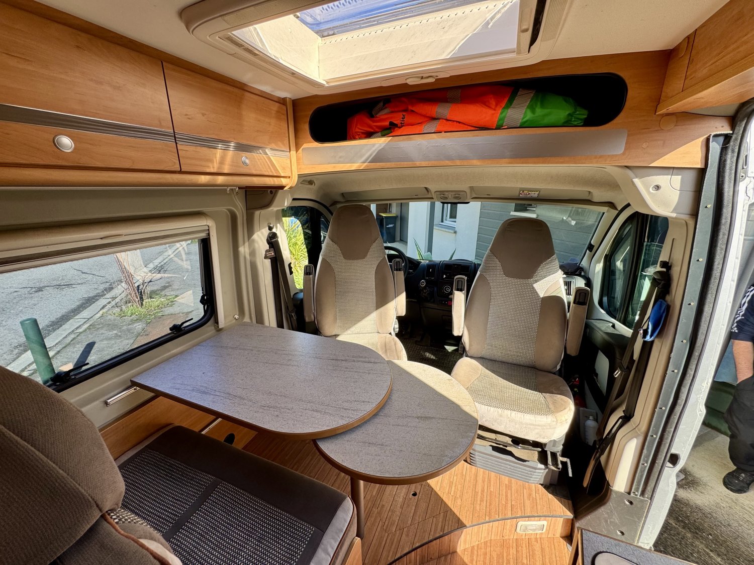 CHAUFFAGE COMBI TRUMA 4, STORE EXTERIEUR 3.5M, GAZINIERE 2 FEUX, ECLAIRAGE LED, MOQUETTE CABINE, RALLONGE DE TABLE, REFRIGERATEUR TRI MIX, STORES PLISSES DE CABINE, TABLE TELESCOPIQUE, LANTERNEAU PANORAMIQUE