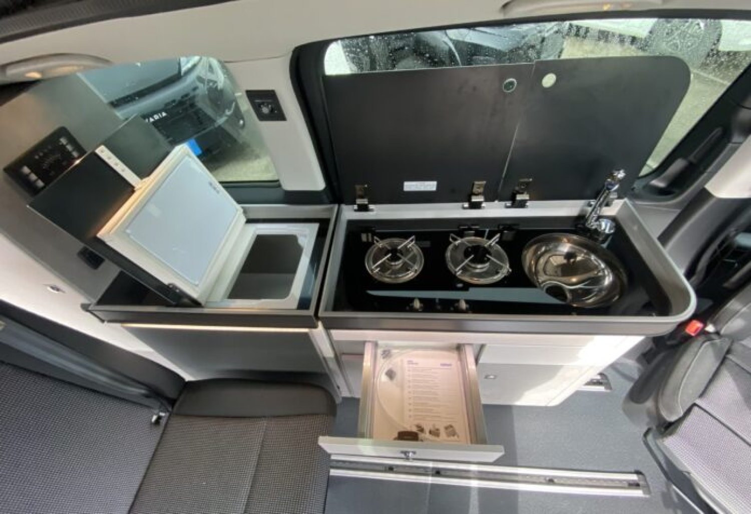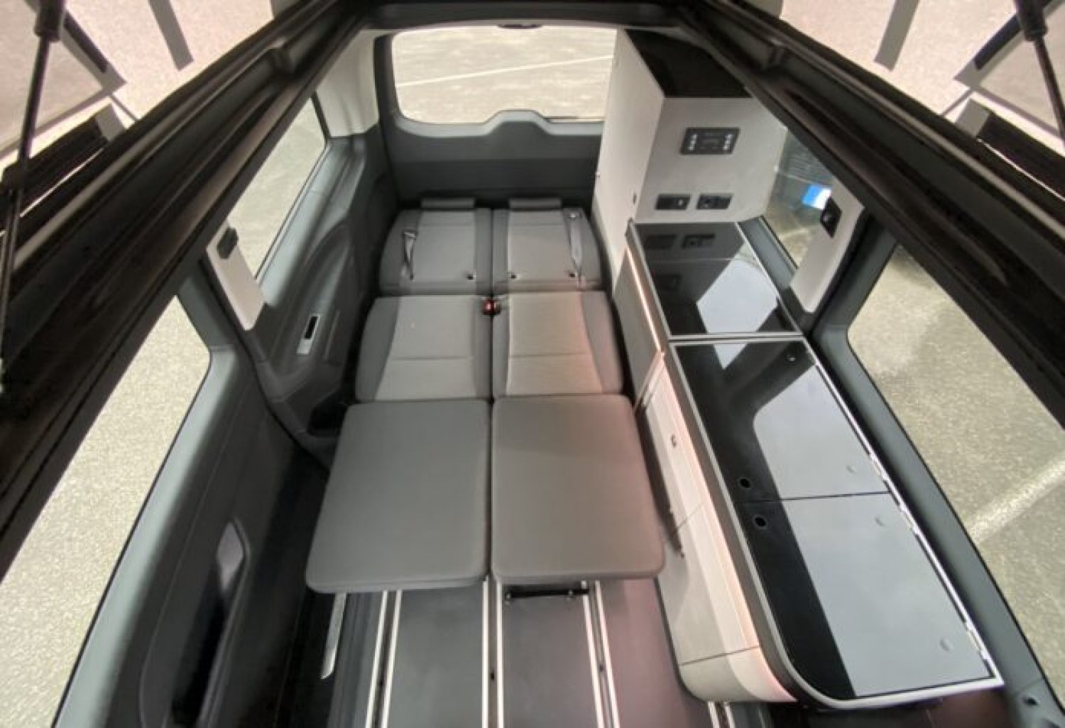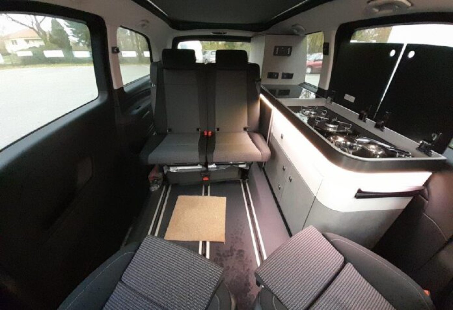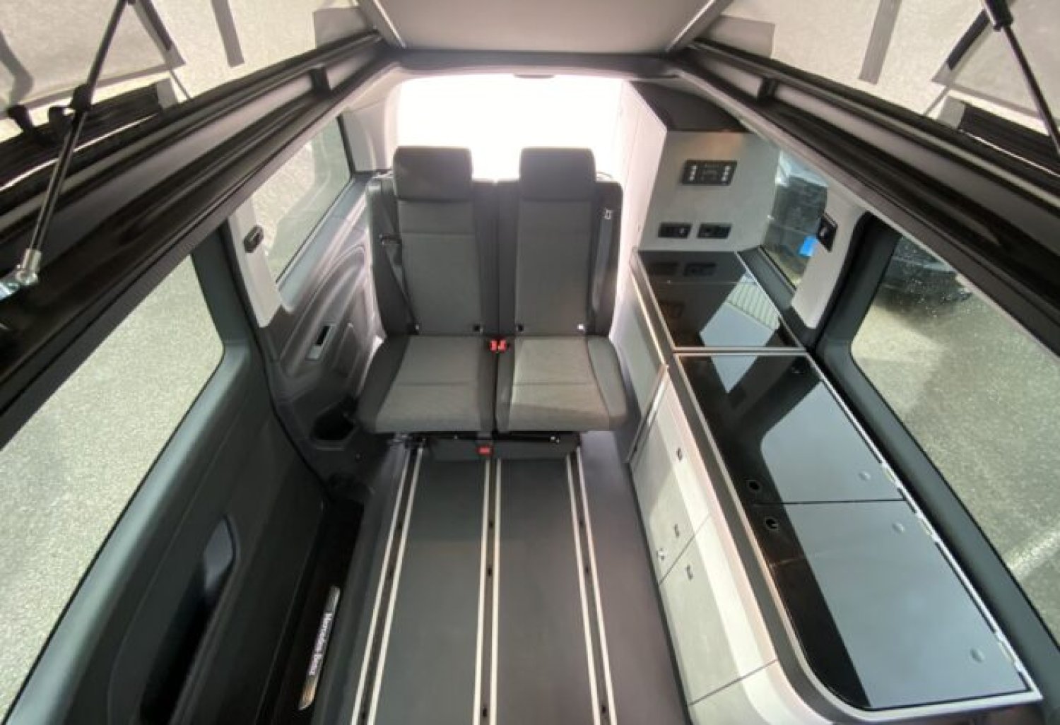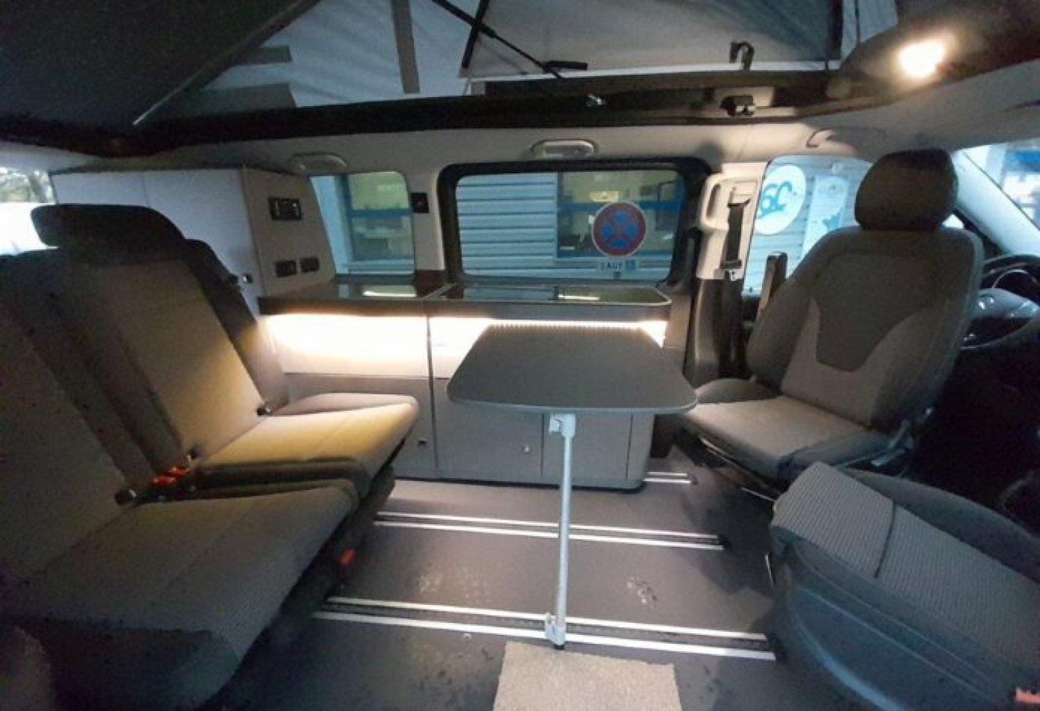 Start and Stop, allumage automatique des feux et essuie vitre avant, climatisation cabine automatique, double airbag, régulateur de vitesse, rétroviseurs rabattables électriques, deux portes latérales, sièges cabine rotatifs, BLOC CUISINE réchaud 2 feux gaz, évier avec réserve d’eau propre 10 l et eau usée 10 l et une prise externe de 230 V CEE. TOIT RELEVABLE comprenant un matelas tout confort.