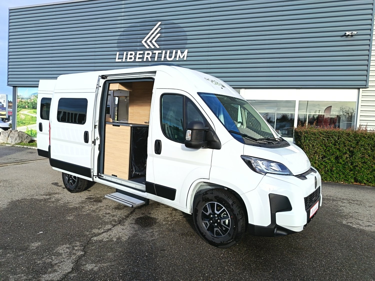 Fourgon allemand de 5.41m du groupe POSSL. Doté d'un design épuré, une construction solide et fiable, ce ROADCAR dispose d'un grand couchage arrière sur soute. Son salon bénéficie d'une banquette face route avec Isofix et des 2 sièges cabine pivotants. La cuisine latérale est équipé d'un frigo à compression et d'un réchaud gaz avec 2 feux.