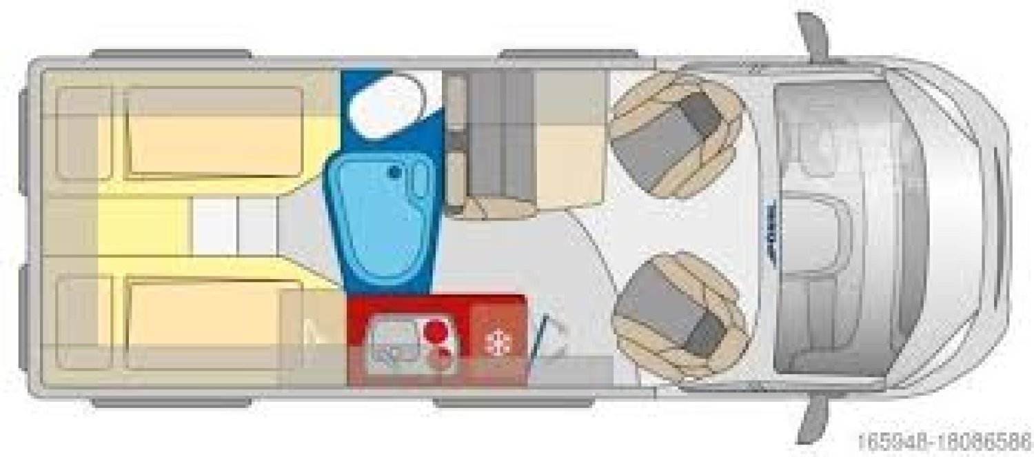 Couchage : Lit jumeaux arrière (193 x 83 cm et 180 x 83 cm)
