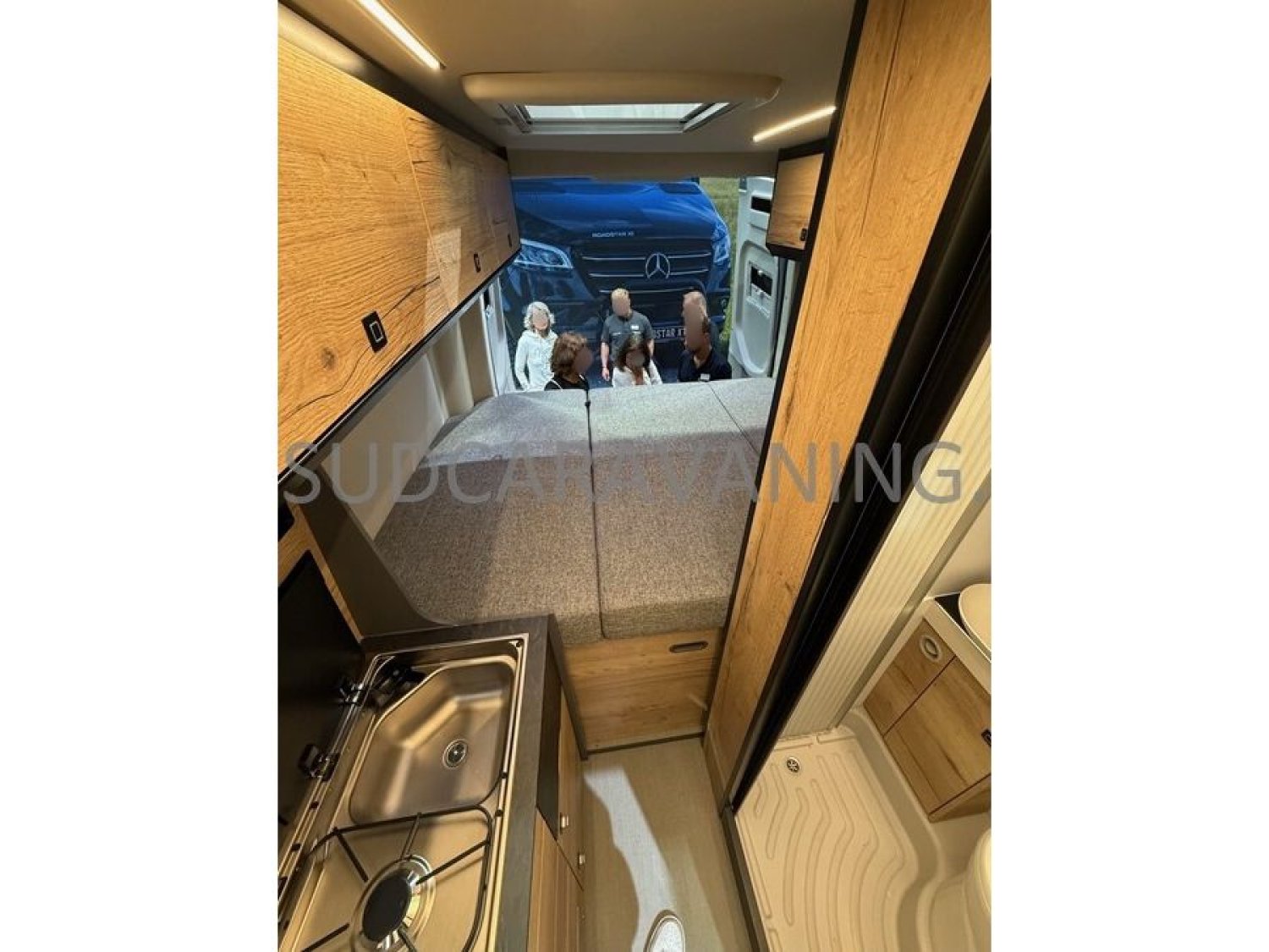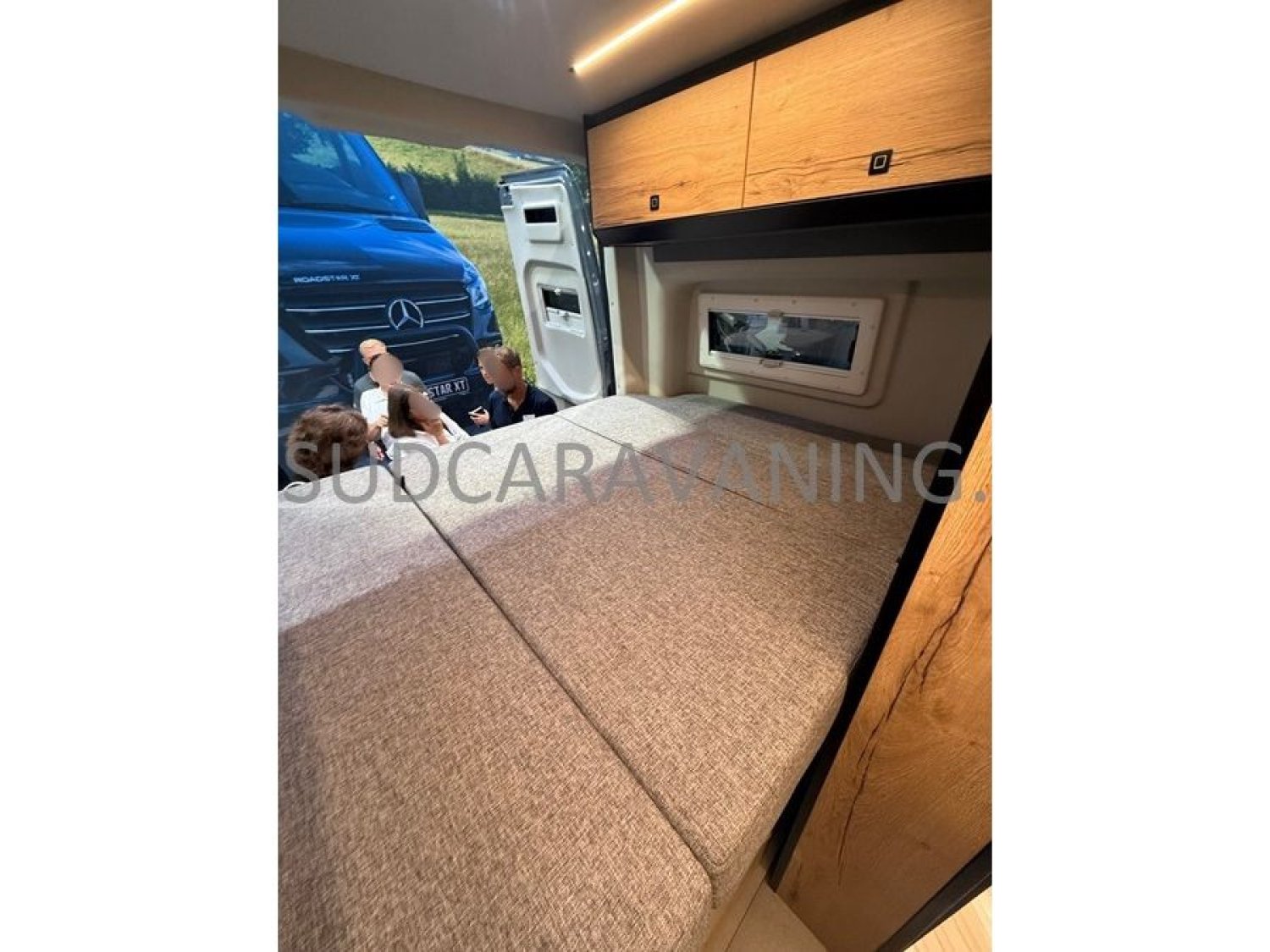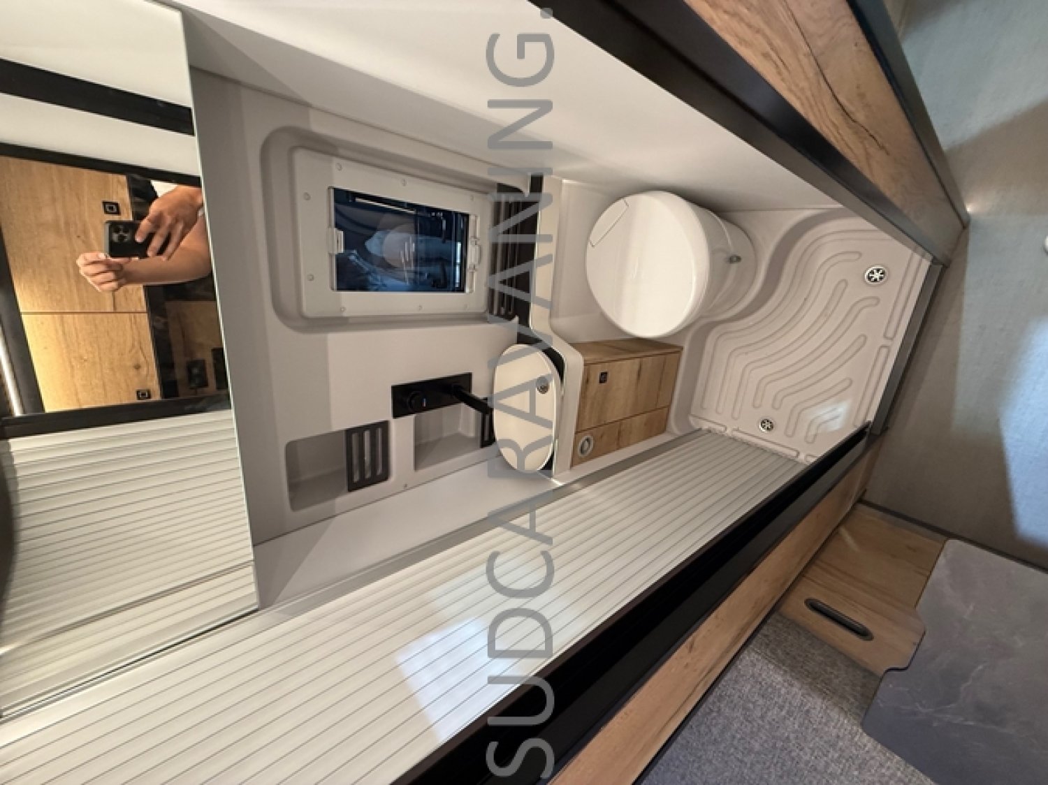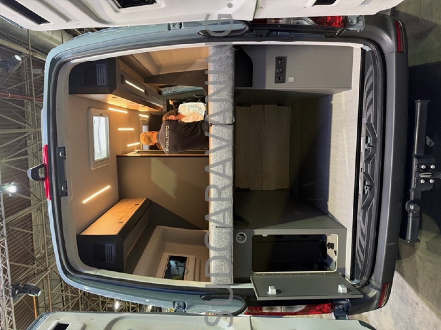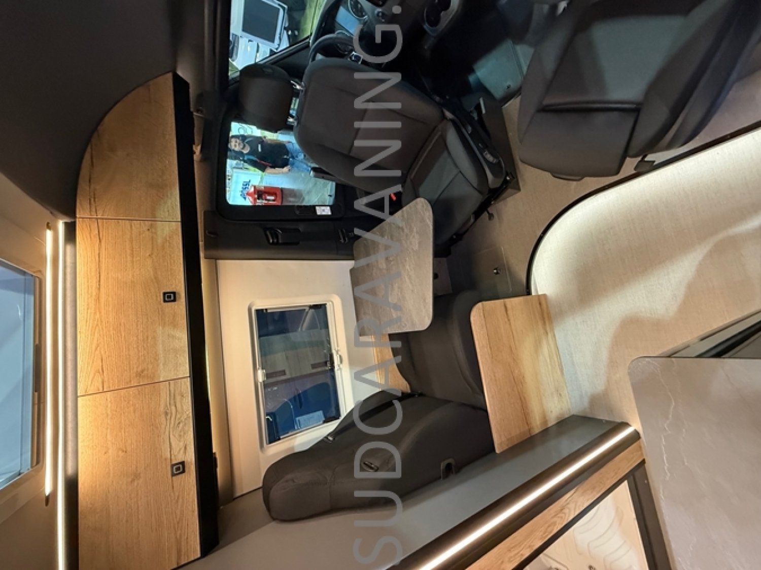 Ce magnifique fourgon tout-terrain vous emmènera partout où vous le souhaitez. Sa dinette 2 places lumineuse et agréable pour passer de bons moments en toute convivialité. Sa cuisine latérale pratique et fonctionnelle équipée d’un réchaud 2 feux, d’un évier en inox, d’un réfrigérateur à compression à double ouverture. En face, son coin salle de bain avec WC à cassette, lavabo, bac de propreté et miroir. A l’arrière, c’est un lit transversal XL grâce à l’extension de carrosserie pour des nuits confortables et agréables. Sans oublier ses nombreux rangements astucieux.