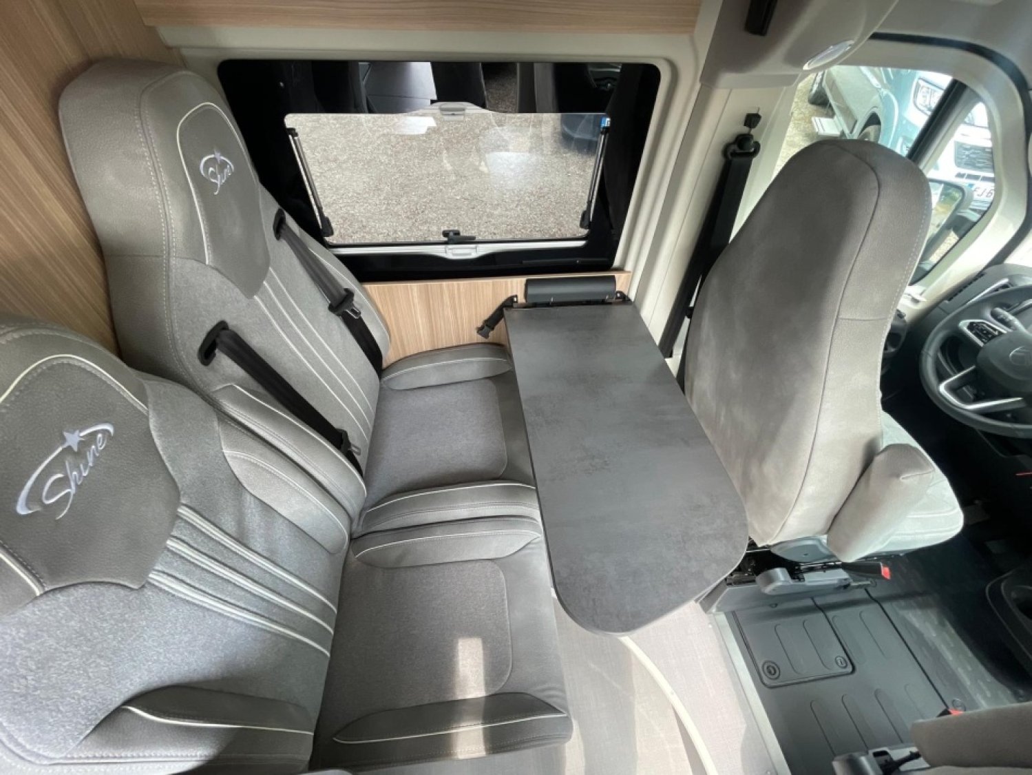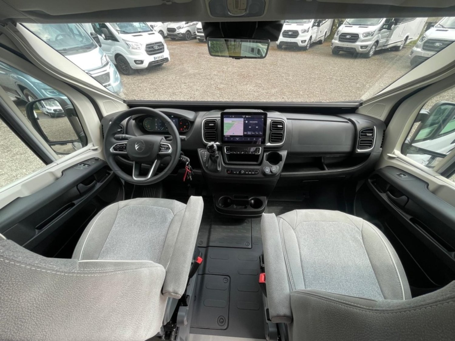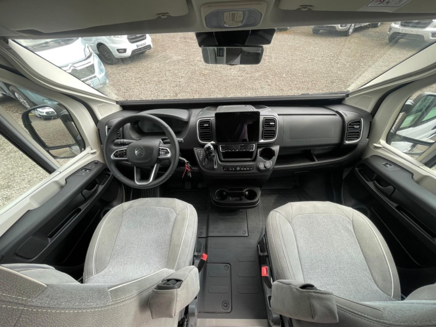 Tableau de bord numérique / Avertisseur de franchissement de ligne, maintien de la voie / Sièges Captain Chair pivotant avec accoudoirs / Volant cuir / Marchepied large / Rétroviseur intérieur numérique / Caméra de recul / Capteurs de pluie et de luminosité / Ecran tactile Infotainment 10’’, DAB, Bluetooth, Navigation / Pneus toutes saisons / Traction + / Booster de batterie
